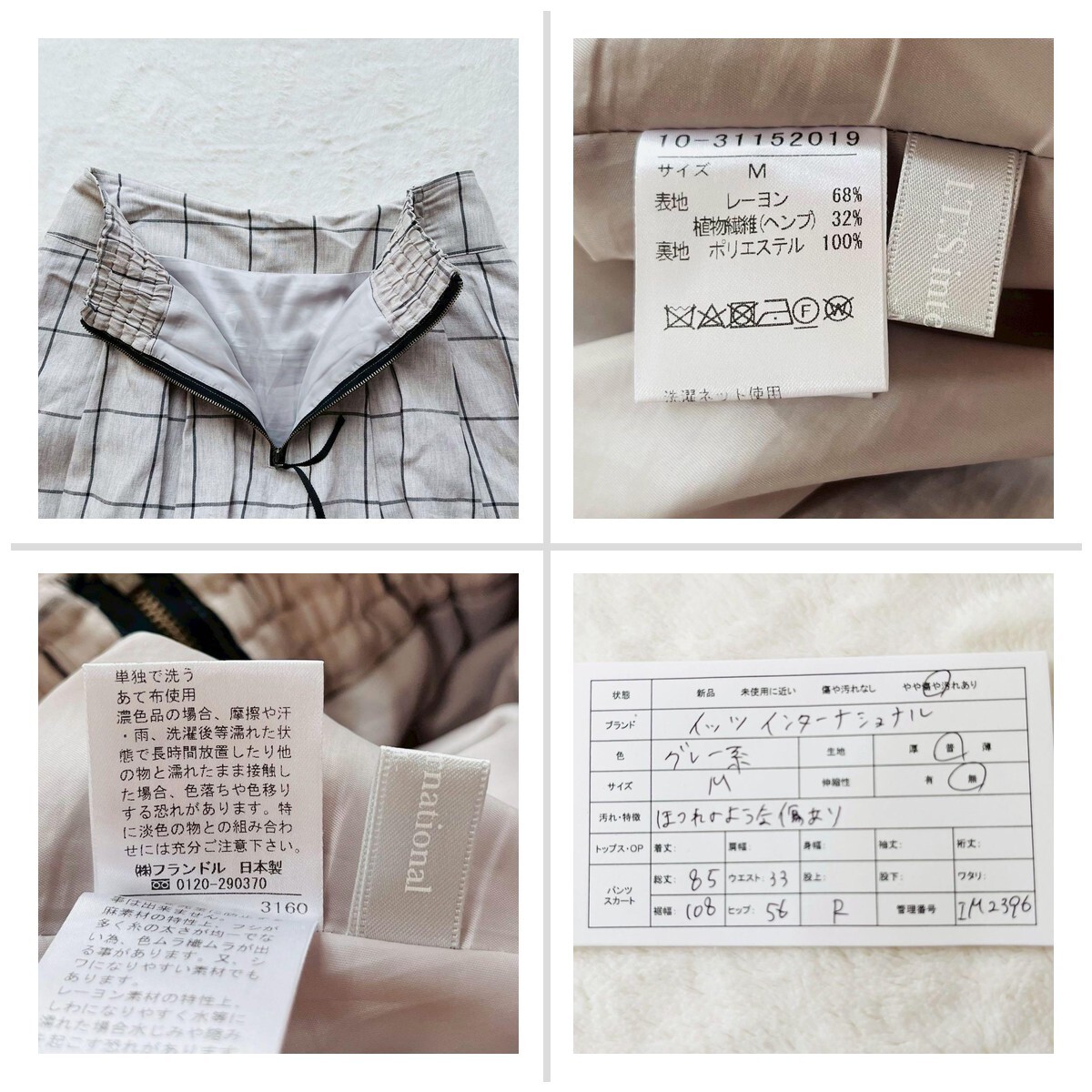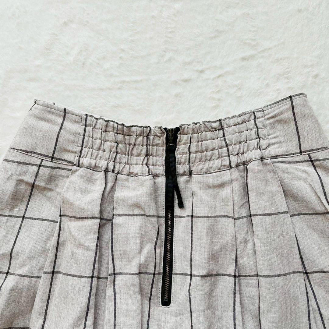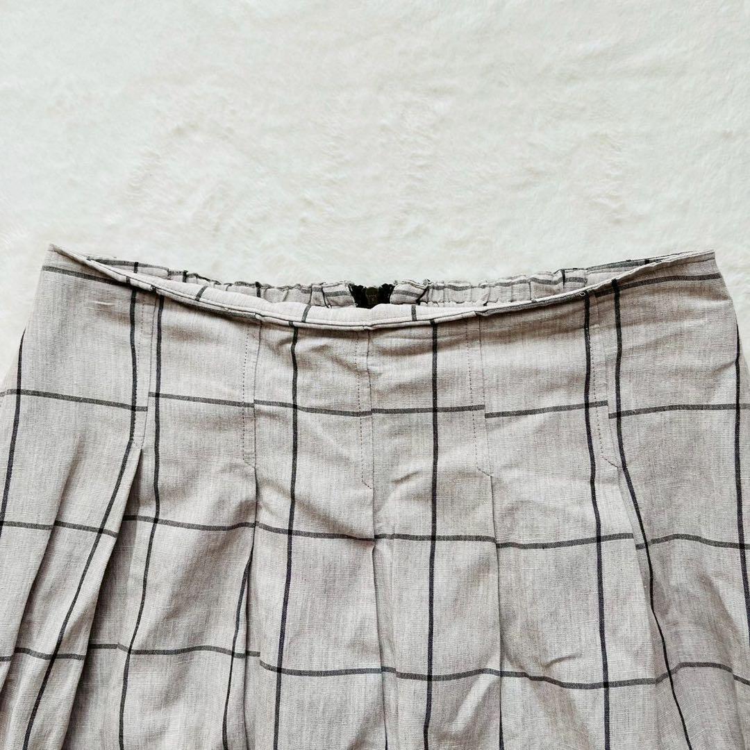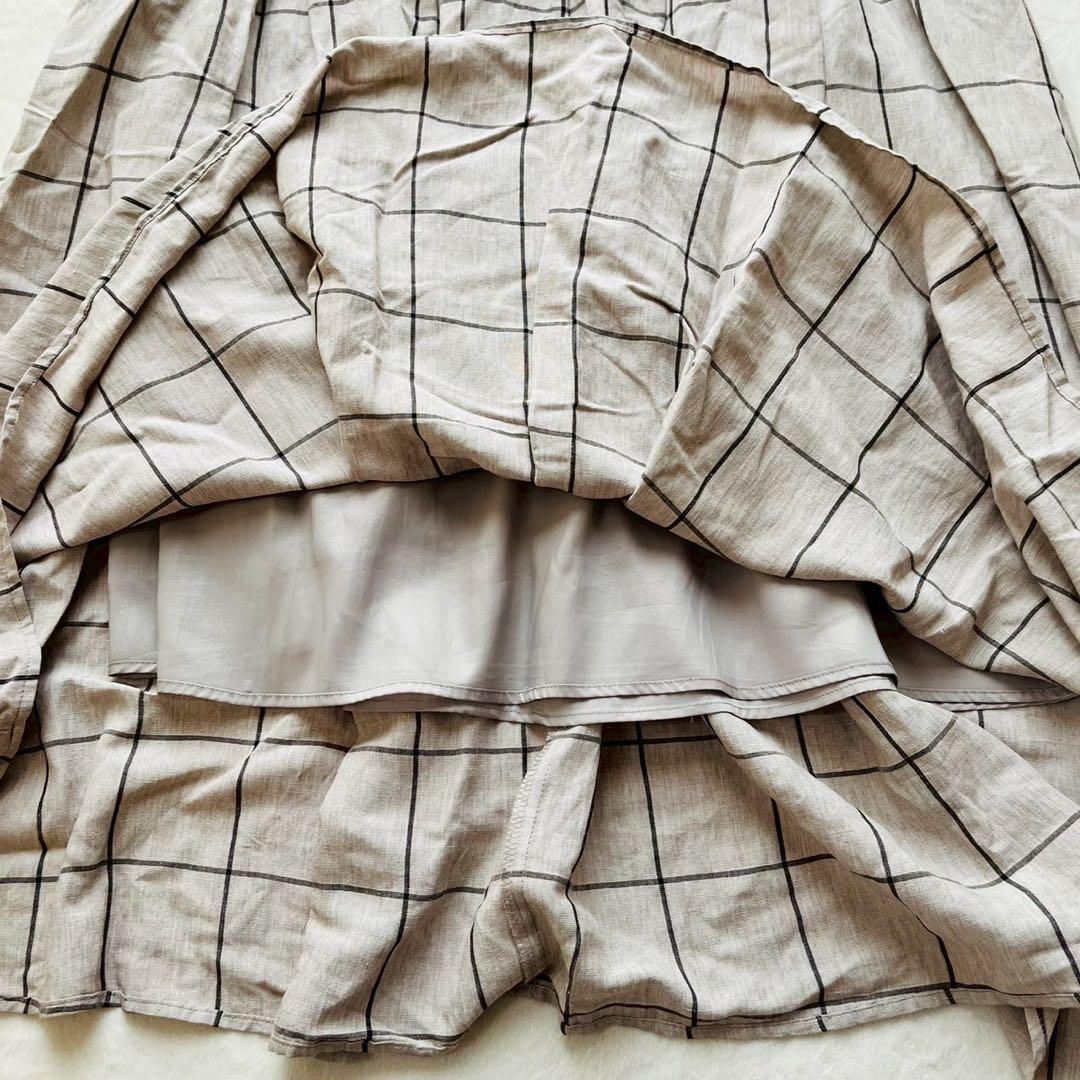 【イッツインターナショナル】 ロングスカート(M)麻混 フレア チェック ミモレ F32A8D