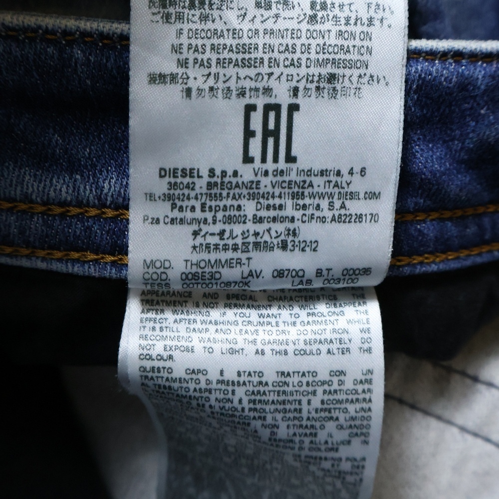 DIESEL ディーゼル THOMMER-T イタリア製 ダメージ加工 ジップフライ スリム デニムパンツ インディゴ 00SE3D