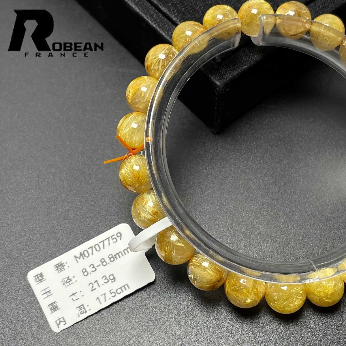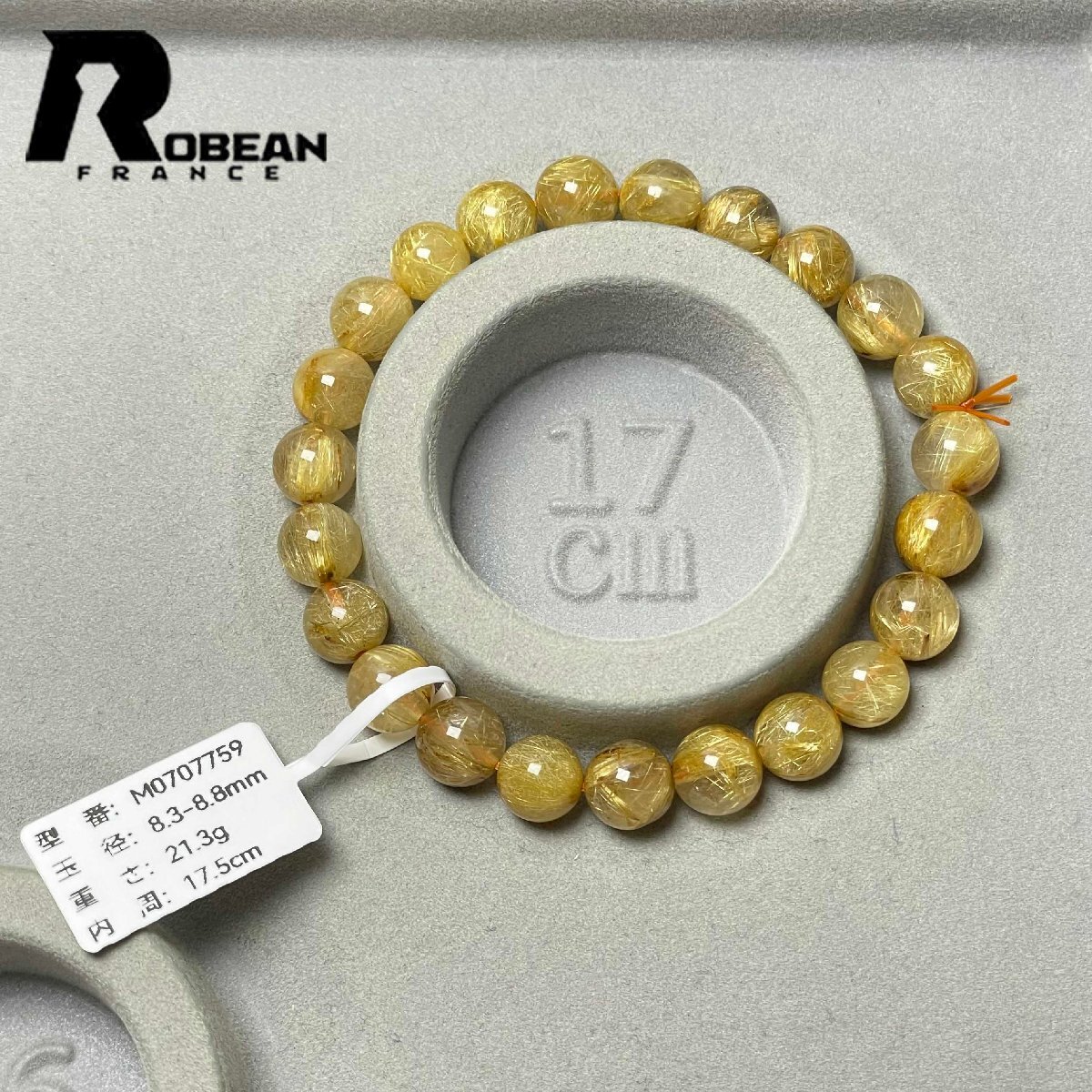 逸品 EU製 定価13万円★ROBEAN・極!極満針ルチルクォーツ★ブレスレット パワーストーン 天然石 綺麗 金運 お守り 8.3-8.8mm M0707759