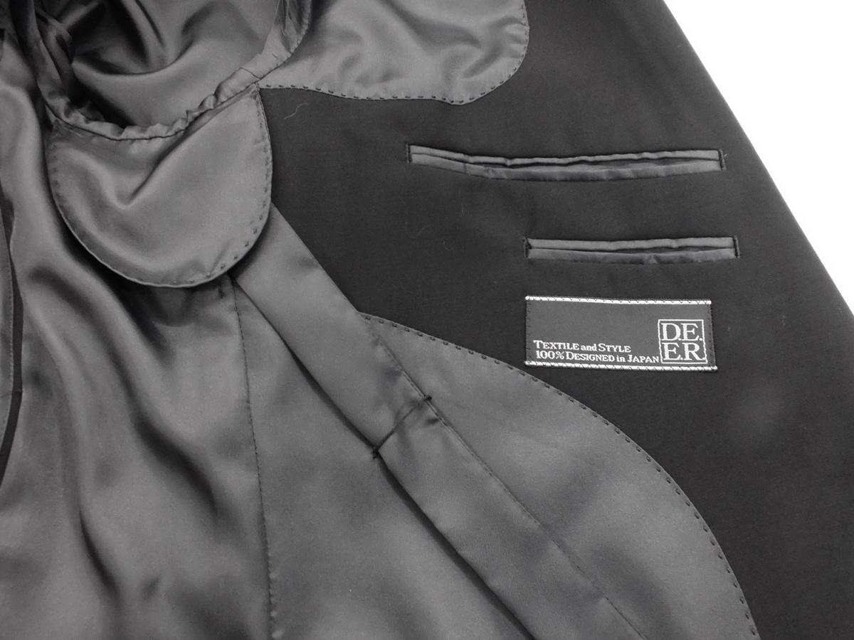 【特色】 ・長く着用できるフル年齢向きで少しゆとりが有るシルエット ・黒の極限を追求したウルトラブラック ・夏以外のオールシーズン対応 ・便利な携帯電話・メガネポケットあり ・パンツは体形の変化に対応しやすいアジャスター機能付きで楽々 ・本台場パイピング付きの高級仕立て ・重厚な光沢感と色に深みが有るタキシードクロス使用 【上着】4釦ダブル・背抜き仕立て・ノーベンツ 【パンツ】ワンタッグ・アジャスター機能付き(前後に約10cm調節可能) 【サイズ】”A6”(胸囲94cm-ウエスト82cm-身長175cm) 【表素材】毛99.9% ウルトラブラック(濃染加工)黒の極限を追求 【裏素材】ポリエステル100% 抗菌防臭加工 【希望小売価格】本体価格68,000円+税 10枚目の写真 【縫製】日本のアパレルメーカーの企画により中国で生産 詳細寸法 A6 三元表示(胸囲94cm-ウエスト82cm-身長175cm) 上着:胸囲111.5/胴回99.5/着丈76.5/肩幅47.4/袖丈61 パンツ:ウエスト82/股上26/股下92/渡り幅35.1/膝幅25.4/裾幅21.8 ◎数字はすべてcmになります。 | ||||
