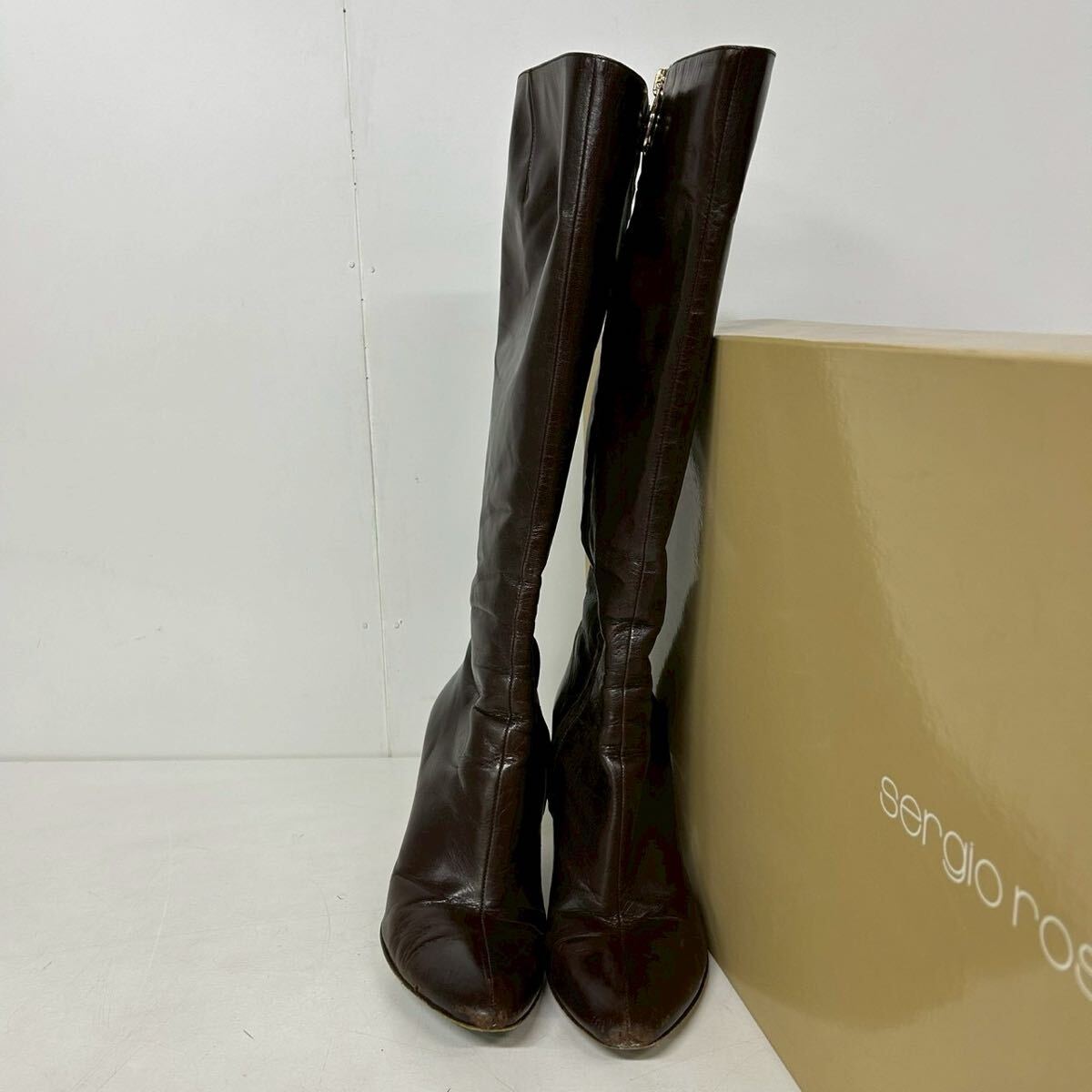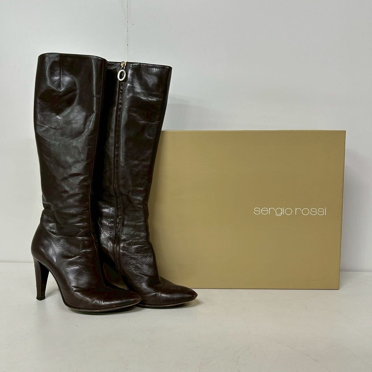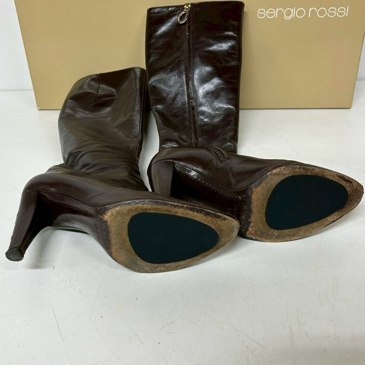 【A】Sergio Rossi セルジオ・ロッシ ロングブーツ レザー ブラウン系 レディース 婦人 ミセス 靴 シューズ 35
