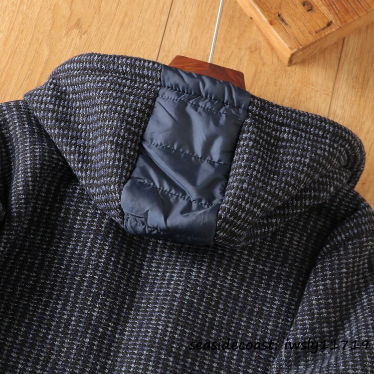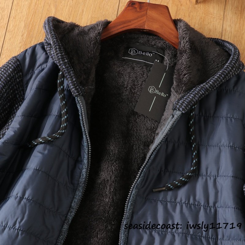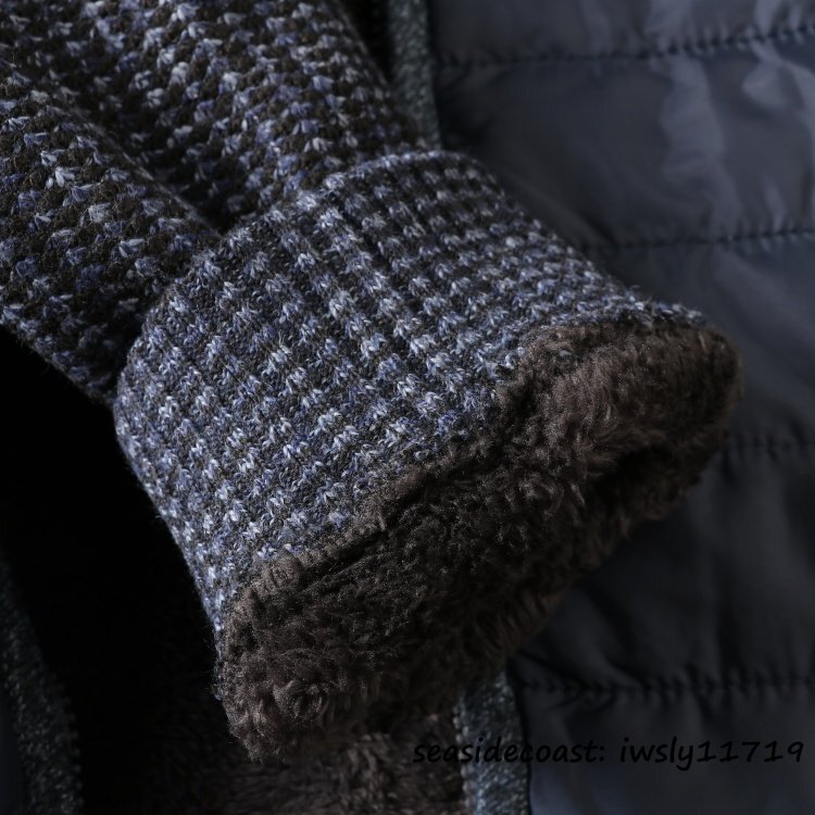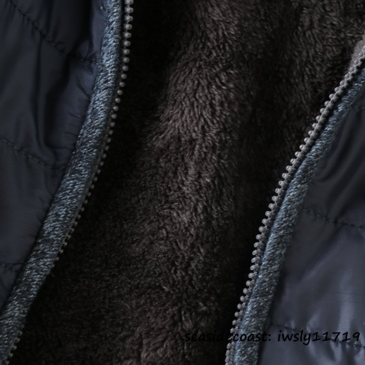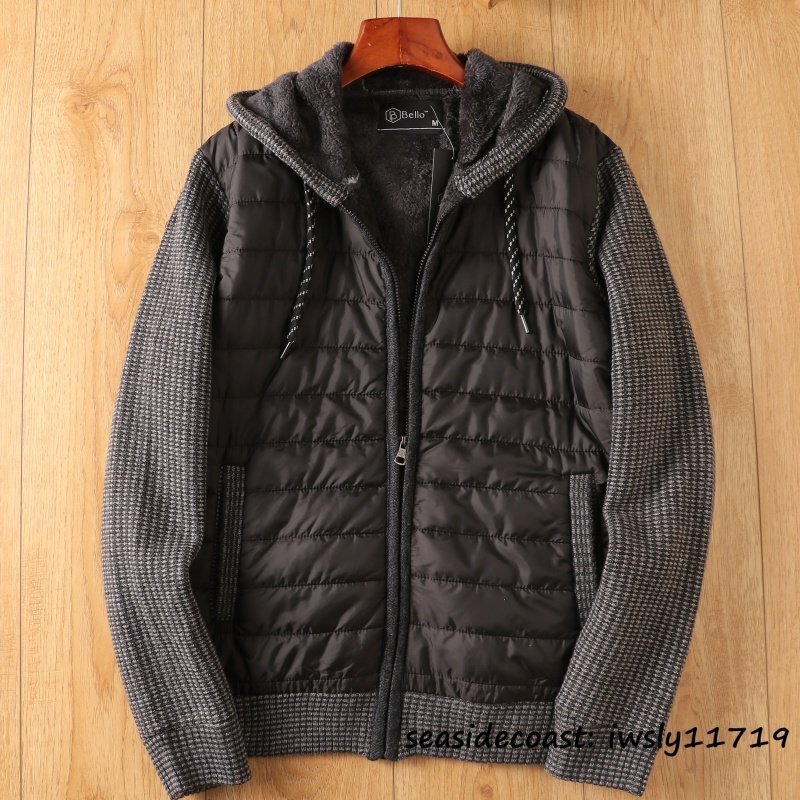 秋冬新品■ジャケット メンズ 切替 裏起毛 フリースジャケット ブルゾン フード付き ニット 保温防寒 厚手 アウター パーカー ブラック L