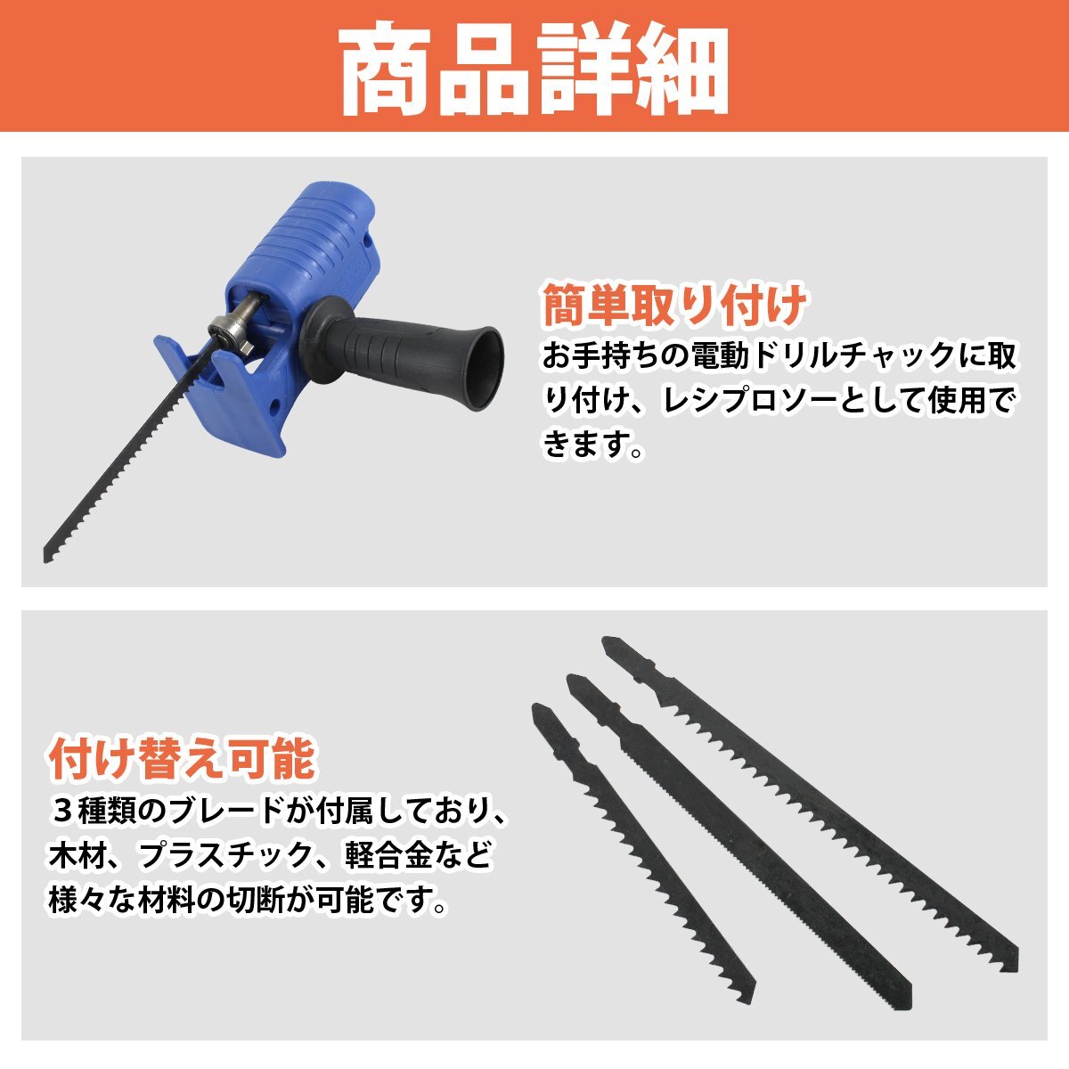【送料無料】電動レシプロソー 電動ドリル アタッチメント 電気ドリル → レシプロソー ノコギリ 変換 簡易型 のこぎり 鋸 替刃3本付属