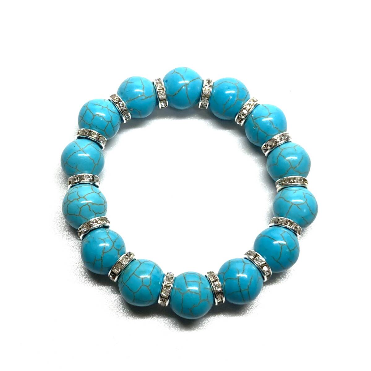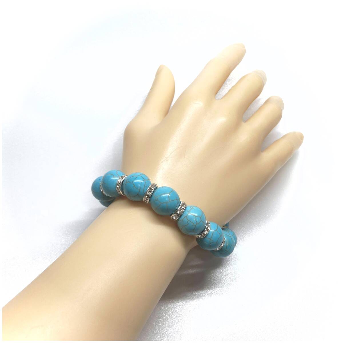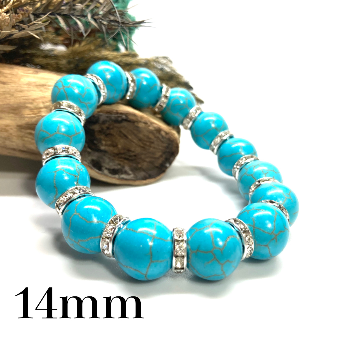 こちらは、14mm玉のターコイズを使用したブレスレットです。石との間にはロンデルを挟み高級感を演出しています。シンプルなデザインですのでどんなコーディネートとも合わせ易いブレスレットです。石大きさは14mm玉です。内周約17cmです。パワーストーンを付けてる方へのプレゼントにもお勧めです。14mmサイズのリクエストが多々ありましたので少量ですが販売しました。気になる方はお早めにどうぞ。