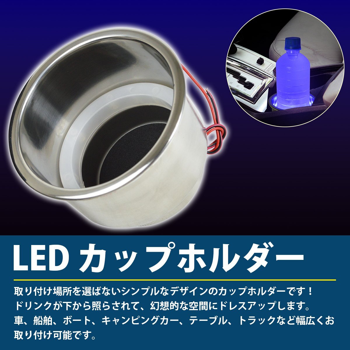 LED カップホールダー 100mm×98mm ブルー 青 DC12V 車 船 水上バイク ジェットスキー ゴムボート クルージング ドレスアップ カスタム