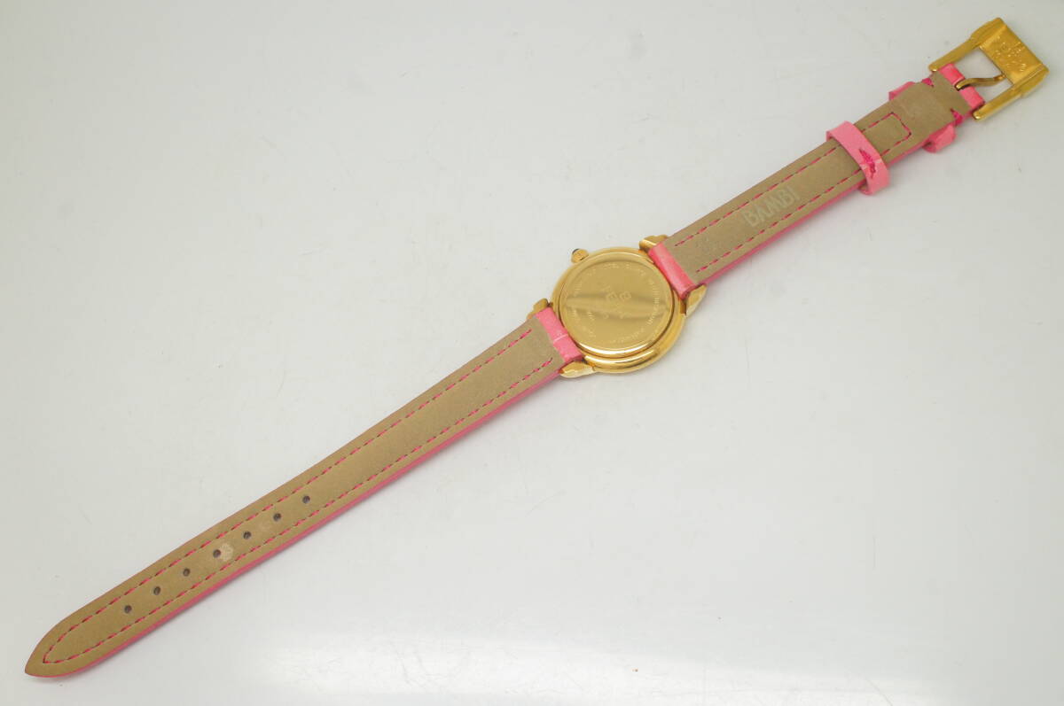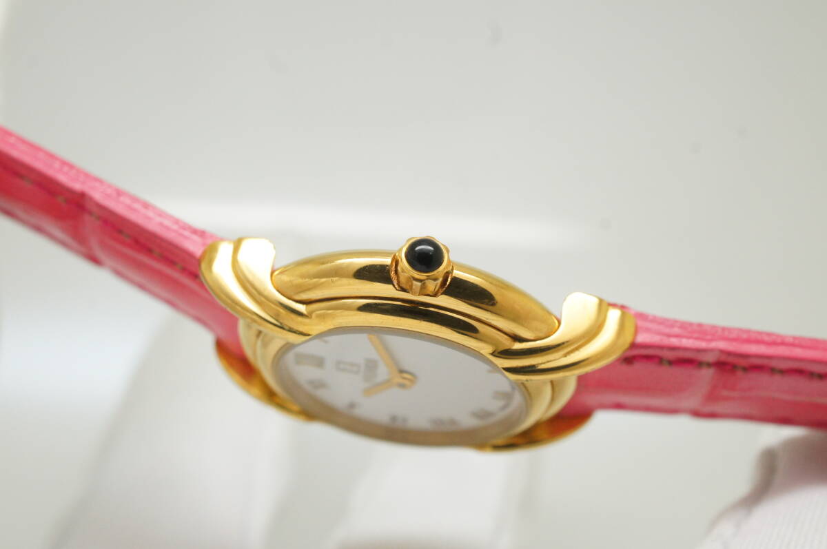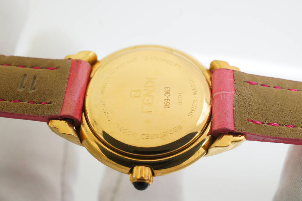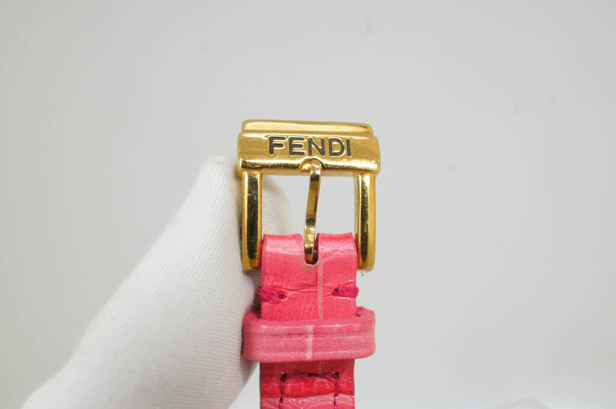 K156●作動良好 FENDI フェンディ スイス製 白文字盤 ローマン数字 純正尾錠 レディース腕時計 ゴールド金×ピンクベルト クォーツ