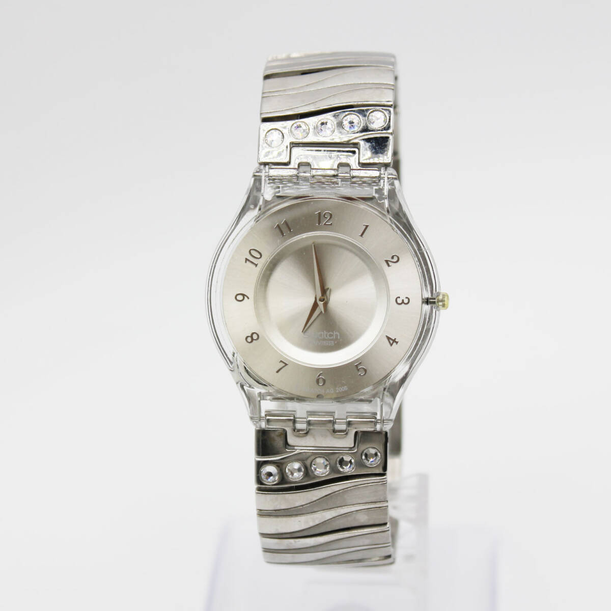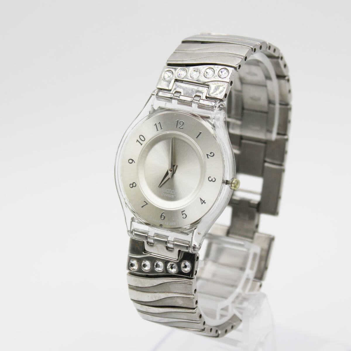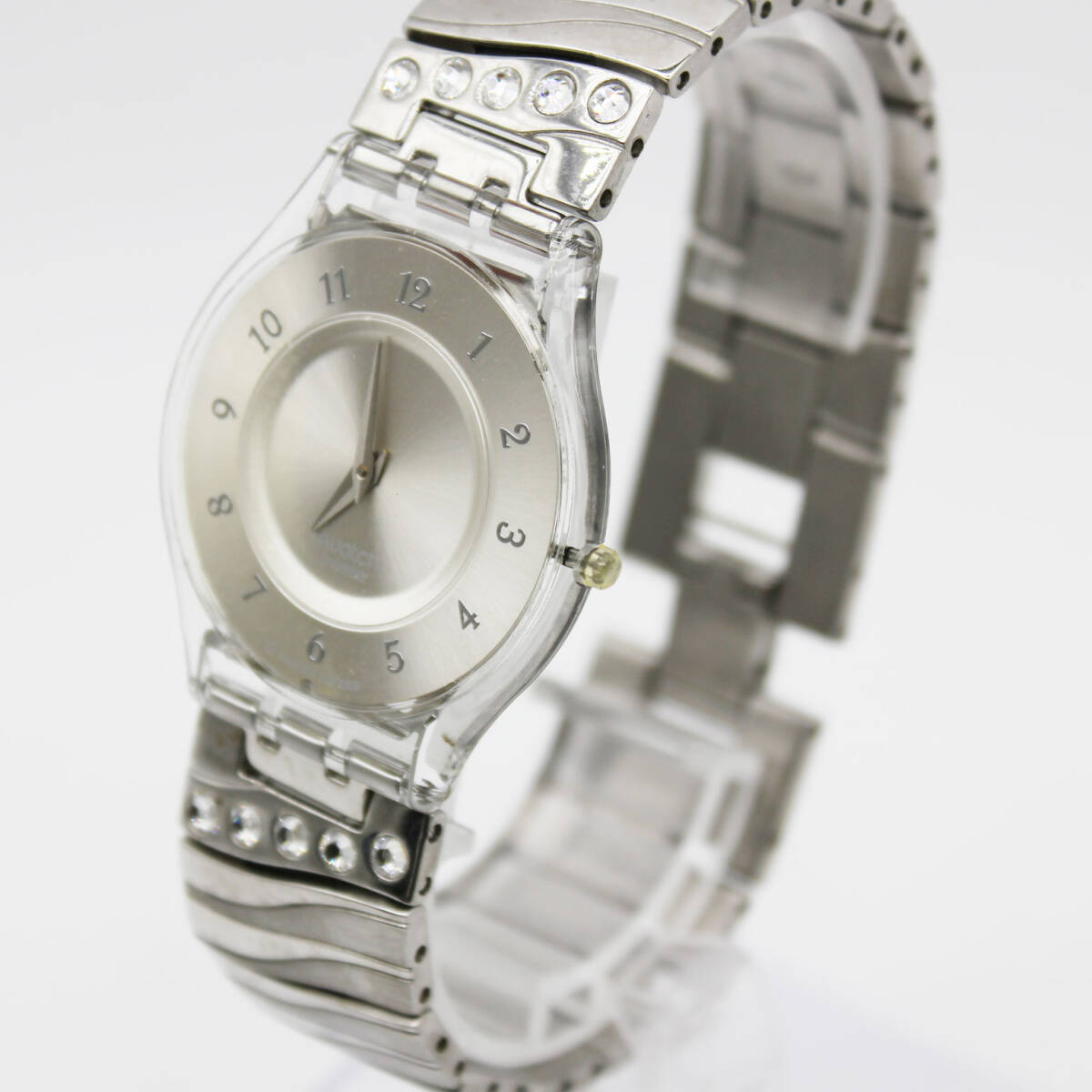 W251126-19 swatch SWISS スウォッチ ユニセックス腕時計 クォーツ ジャンク 文字盤シルバー スケルトン 石付き
