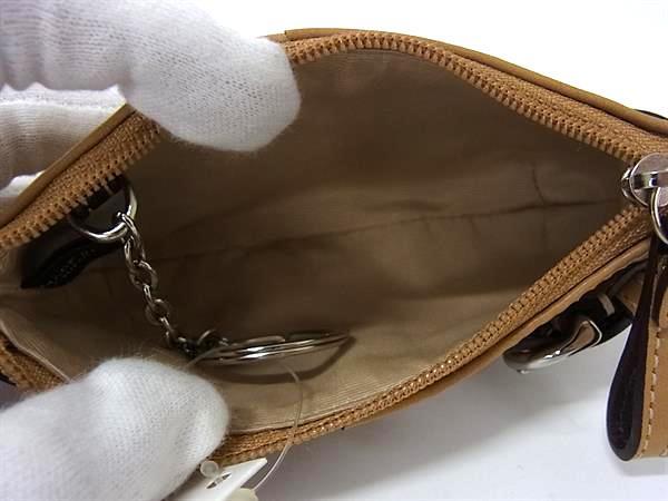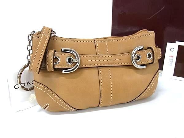 1円 ■極美品■ COACH コーチ レザー キーリング付き コインケース コインパース ミニポーチ 小物入れ ベージュ系 FU0177