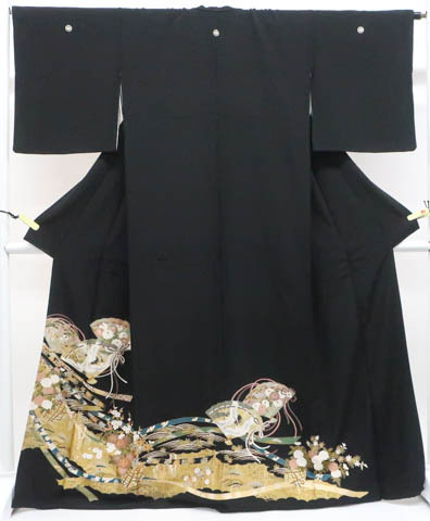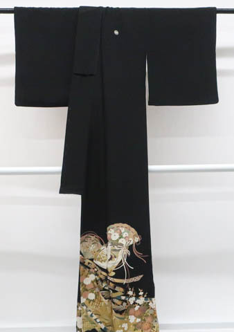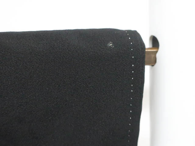 リサイクル商品のため、左前袖・衿・比翼衿・比翼出口に薄汚れがございますが着用可能なお品です。 地色は黒です。 1枚目の画像が近いお色かと思われます。 素材は正絹です。 |