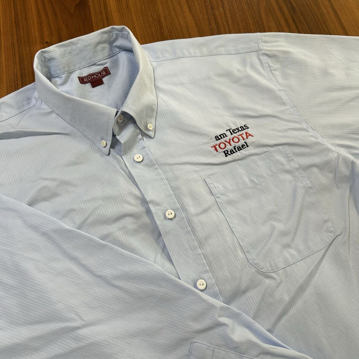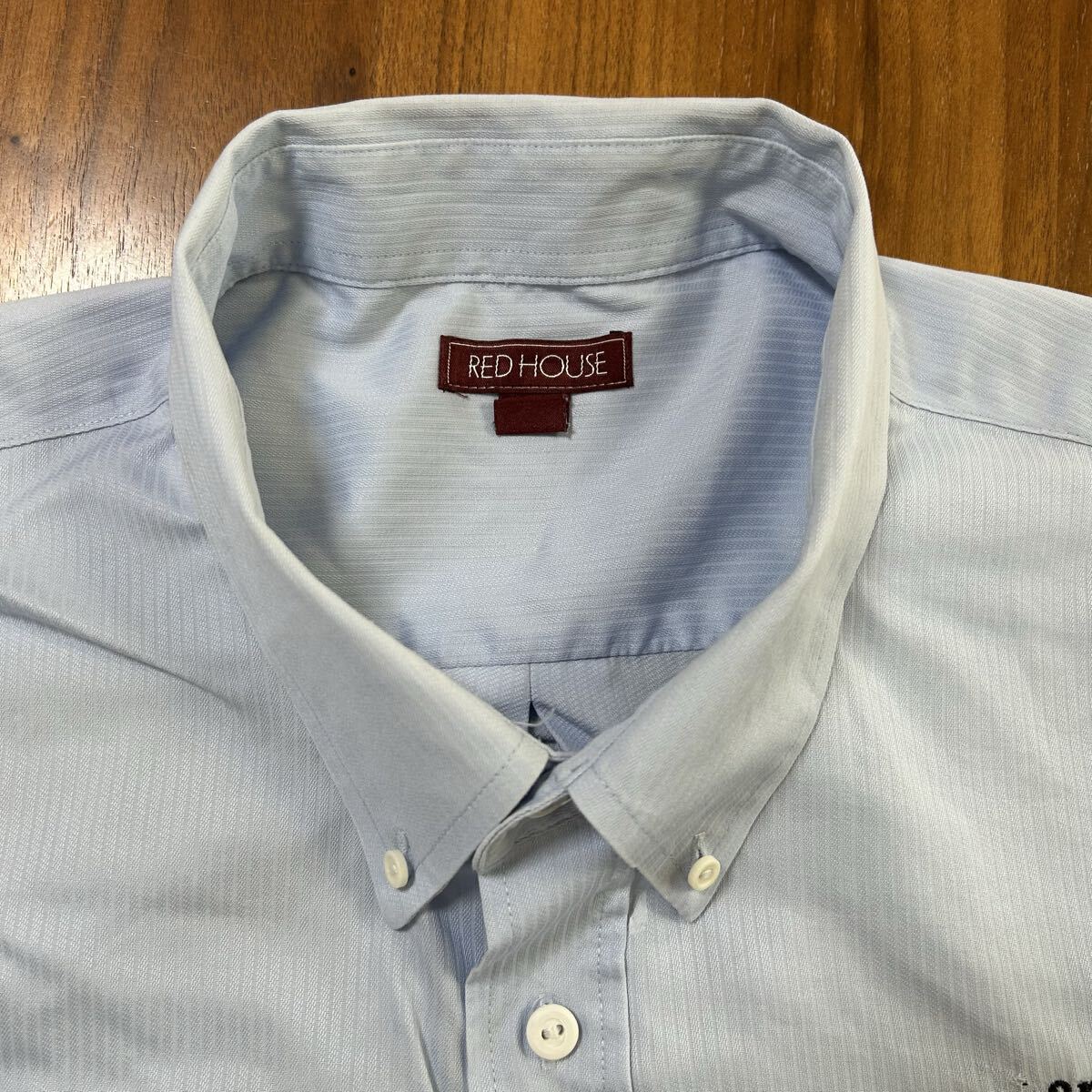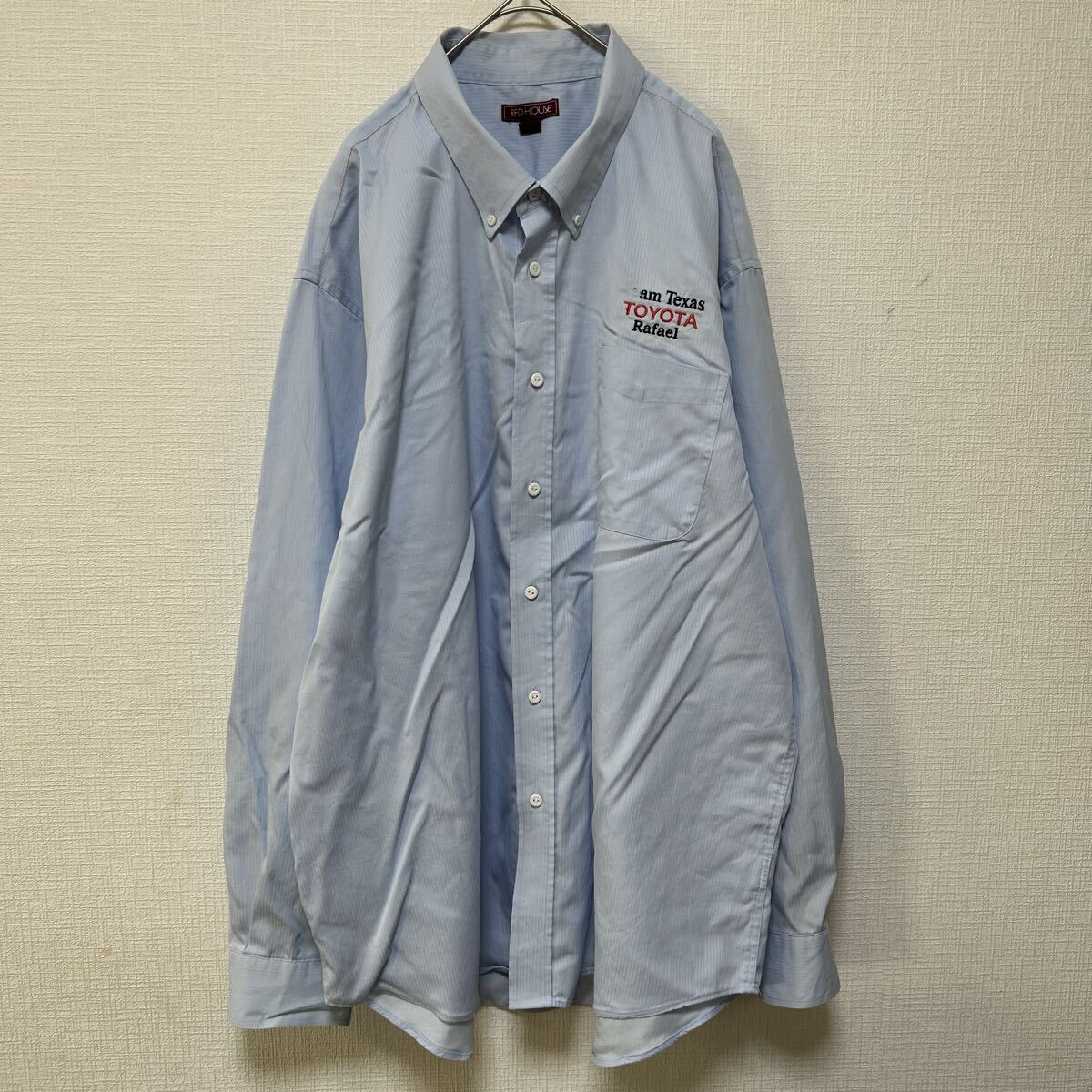 RED HOUSE シャツ 長袖 ボタンダウン 胸ポケット 胸ロゴ 刺繍ロゴ 水色 ブルー 古着 2XL