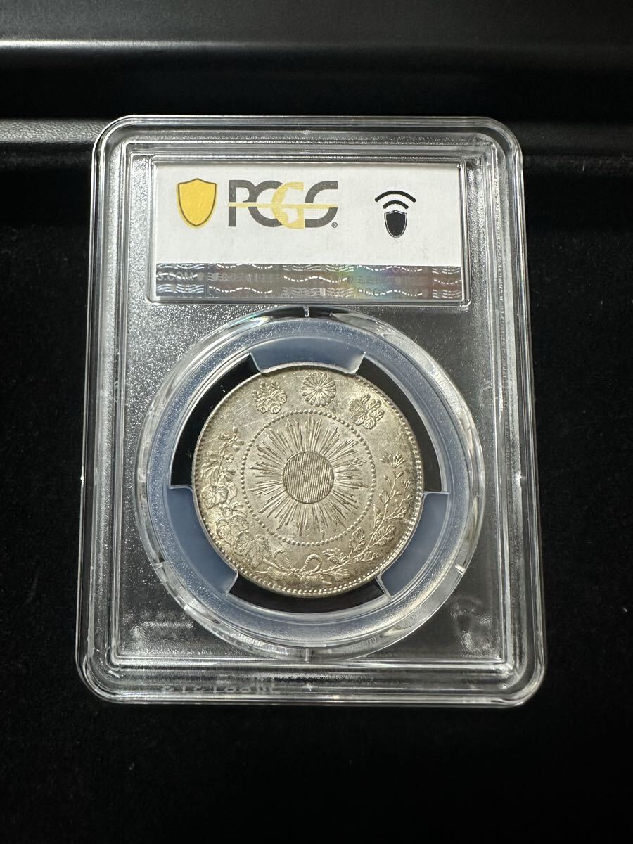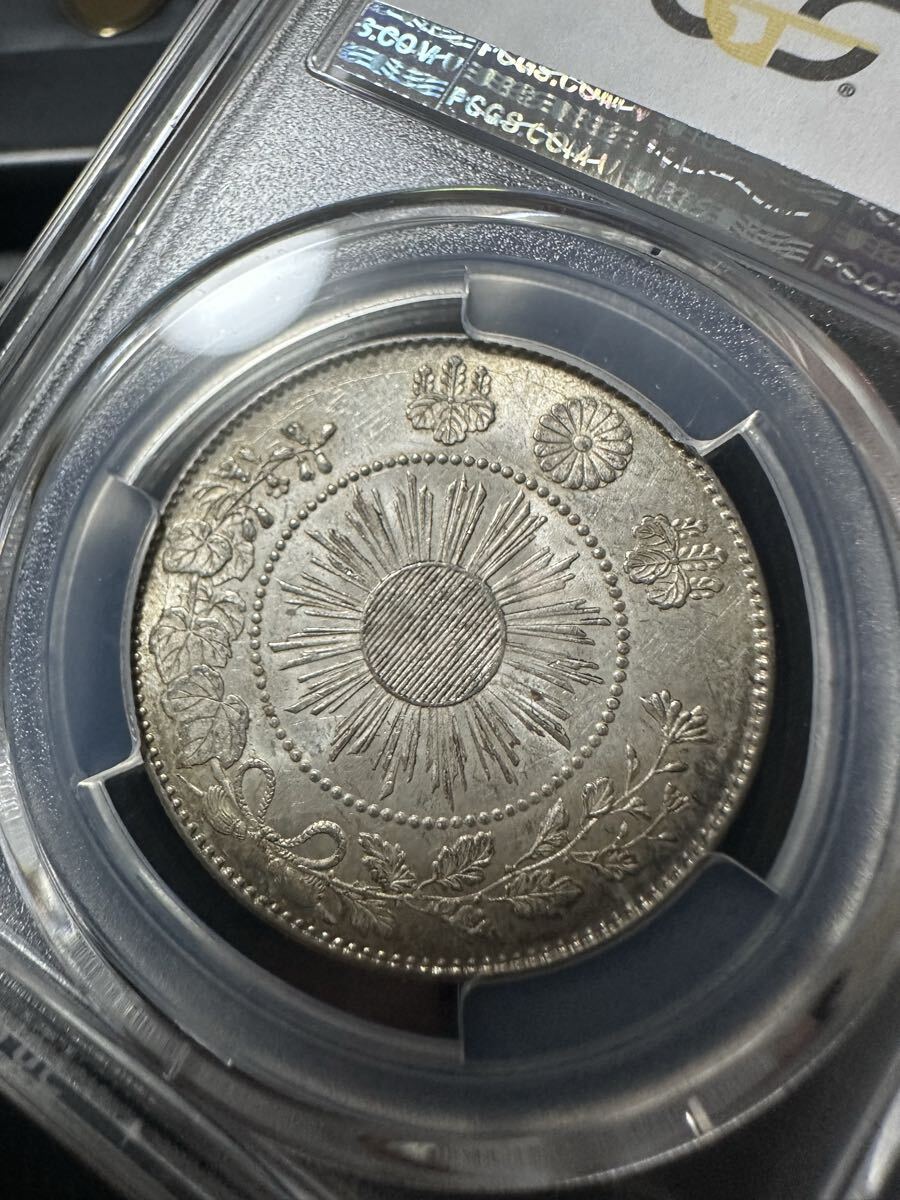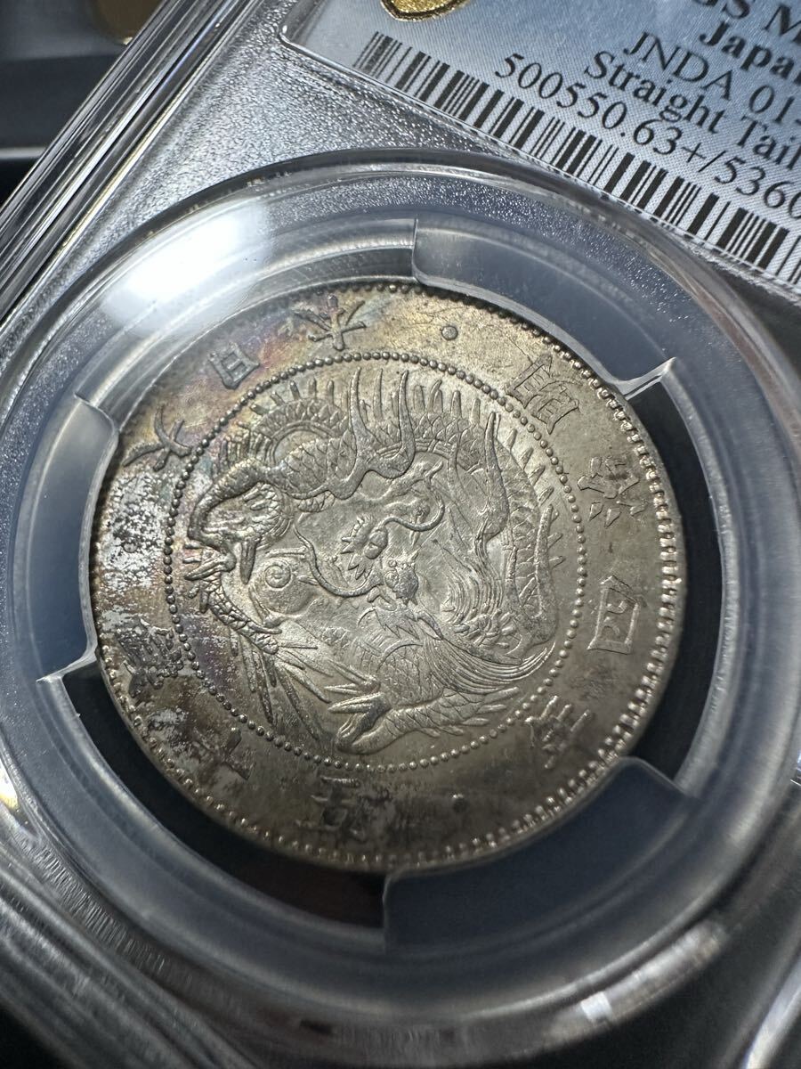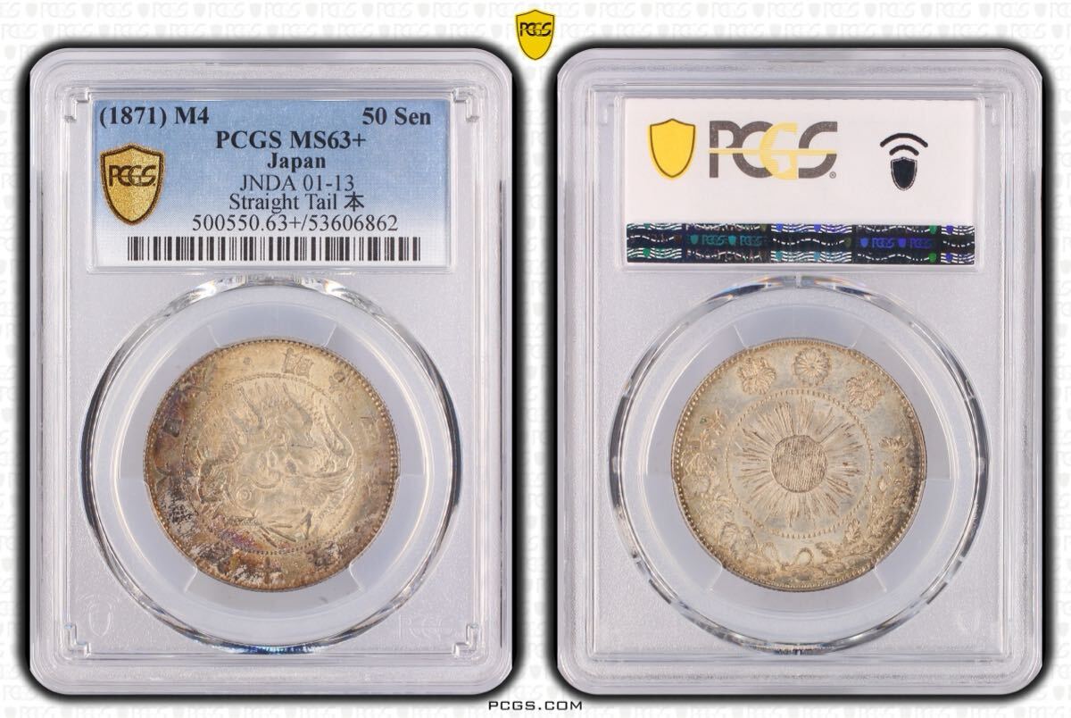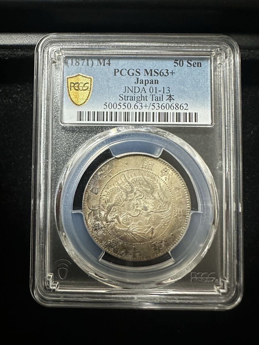 【25】旭日竜大型50銭銀貨 明治4年 トメ本 PCGS MS63+ 五十銭 1円銀貨 貨幣 古銭 硬貨 アンティーク 日本銀貨 スラブコイン NGC 鑑定済み