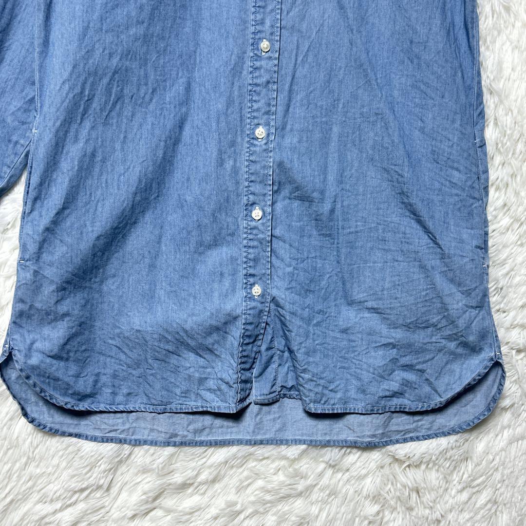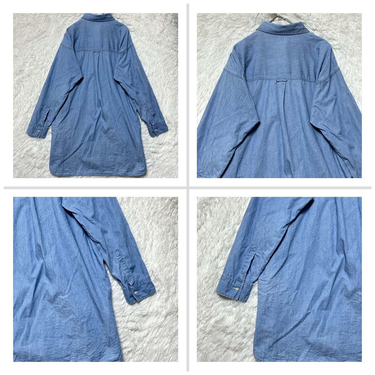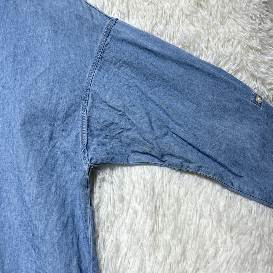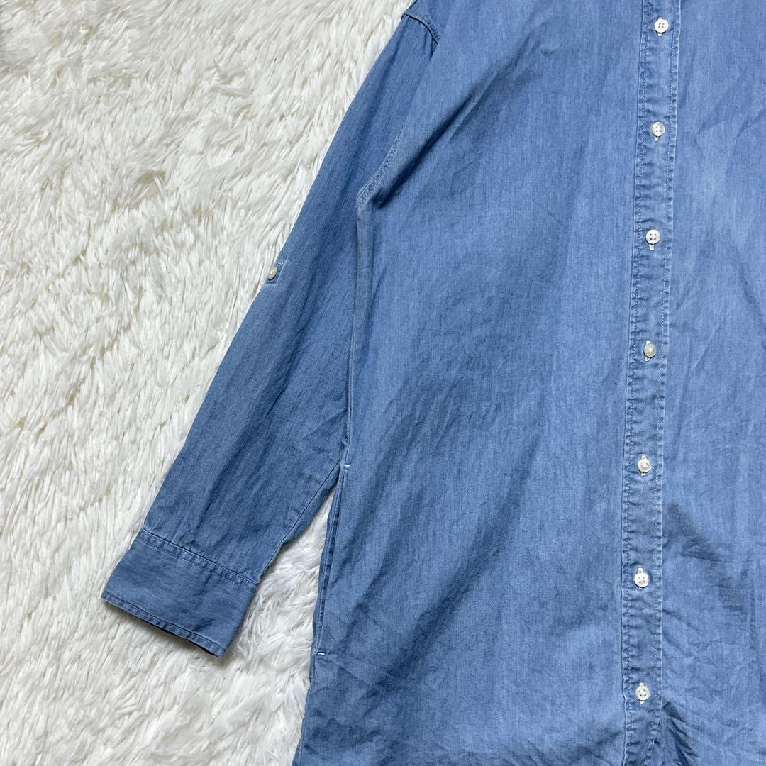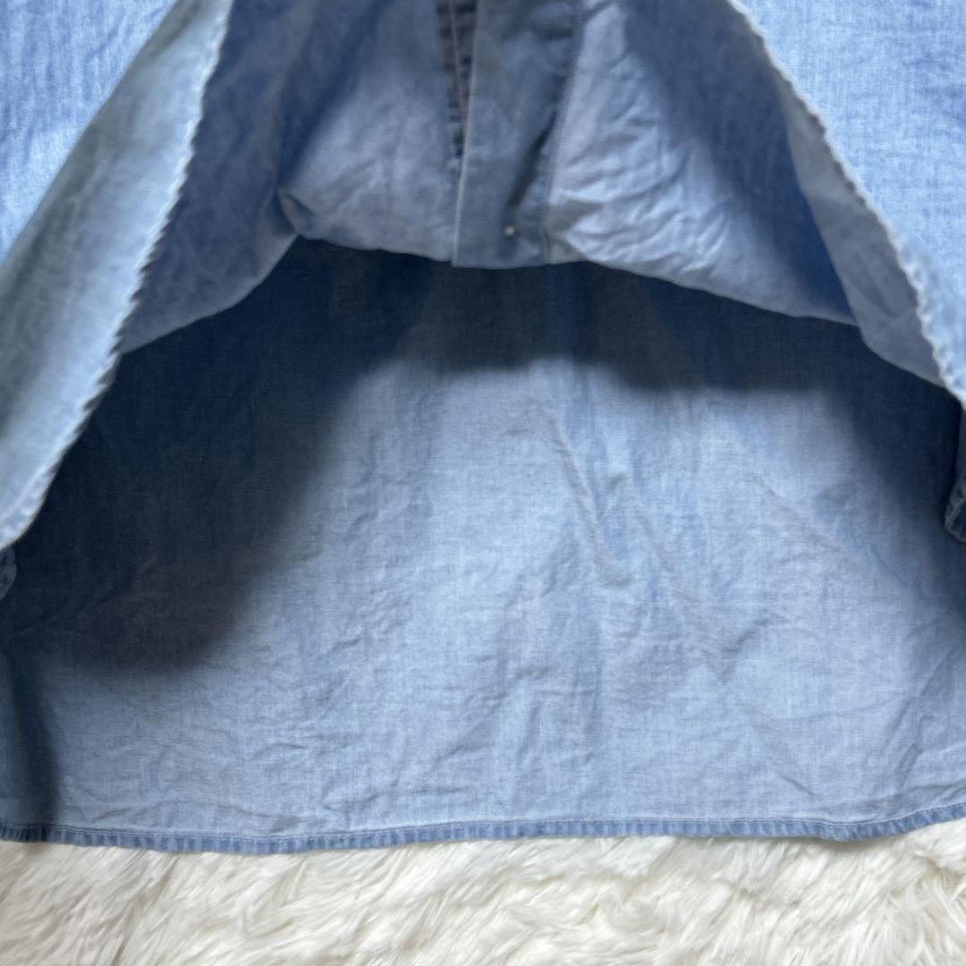 ユニクロ デニムワンピース ポケット付 S ロールアップ 長袖 ライトブルー 33454E