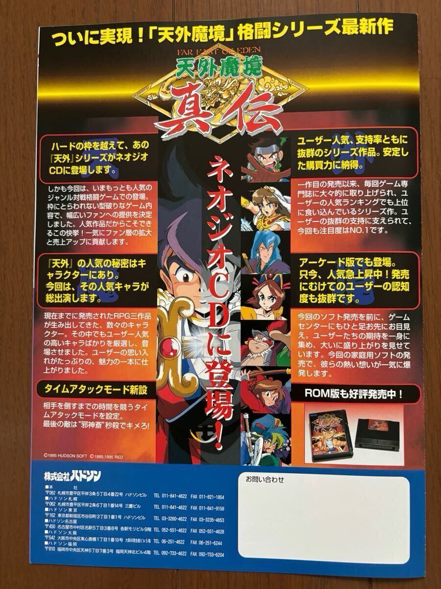 チラシ 天外魔境 真伝 ネオジオ ハドソン 天外魔境 ゲーム パンフレット カタログ フライヤー NEOGEO