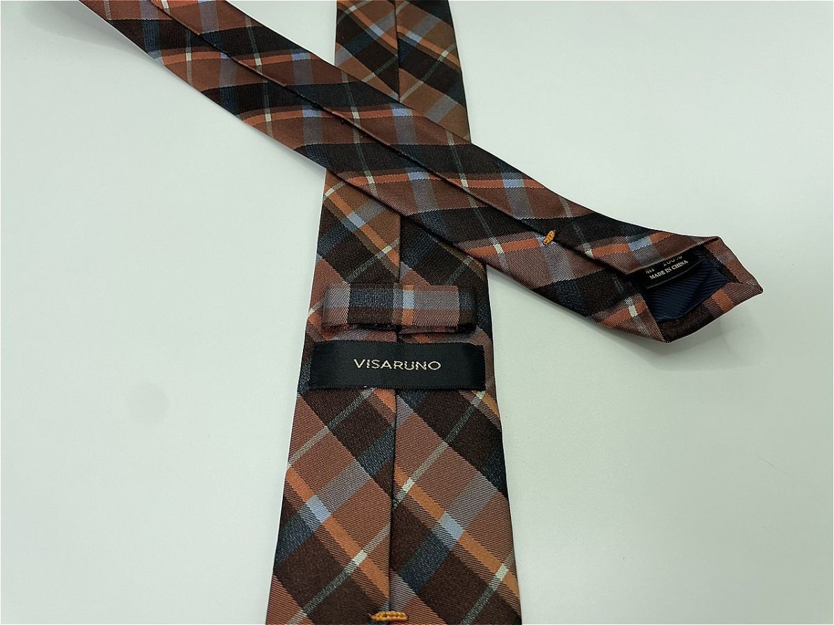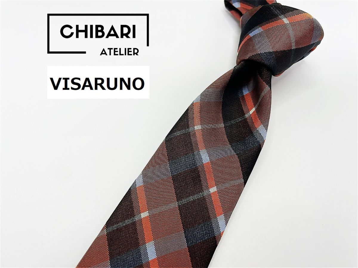 【美品】VISARUNO ヴィサルノ チェック柄 ネクタイ 3本以上 送料無料 メンズ ブラウン 1102141