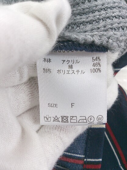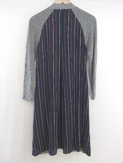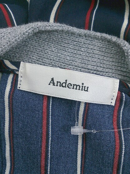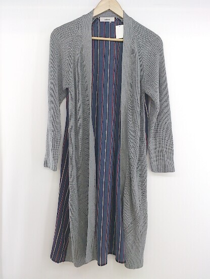 ◇ Andemiu アンデミュウ ボタンレス ロング丈 長袖 カーディガン サイズF グレー ネイビー マルチ レディース P