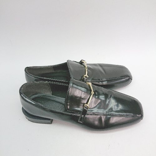 ◇ natalia moreno ナタリア・モレノ スクエアトゥ エナメル ビット付き ローファー サイズ37 ブラック レディース E