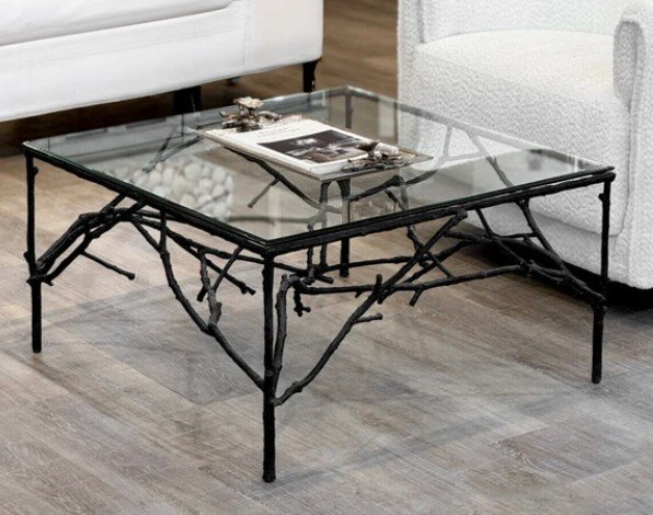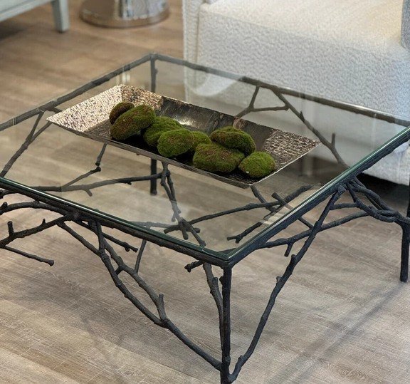 輸入家具 センターテーブル アイアン 小枝 ブランチ ガラス リビングスタジオ 直輸入 クラシック シャビー アンティーク AC-R003 送料無料