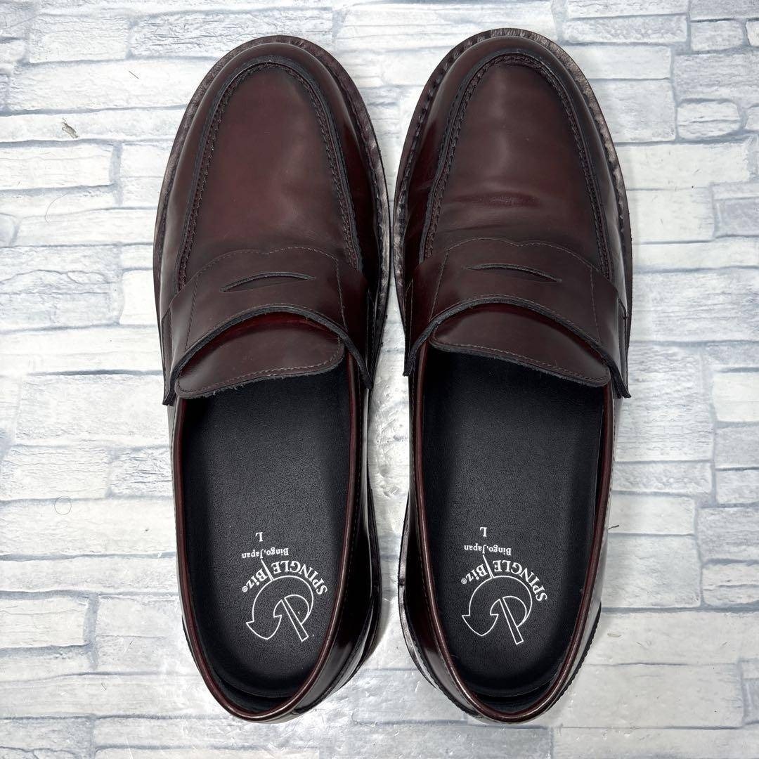 美しい光沢を放つガラスレザーを採用したステッチダウンのローファーモデル。