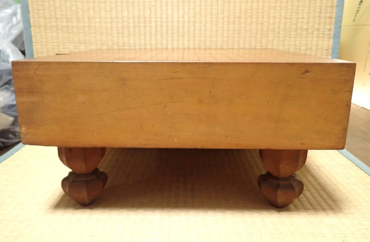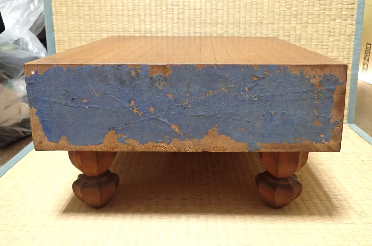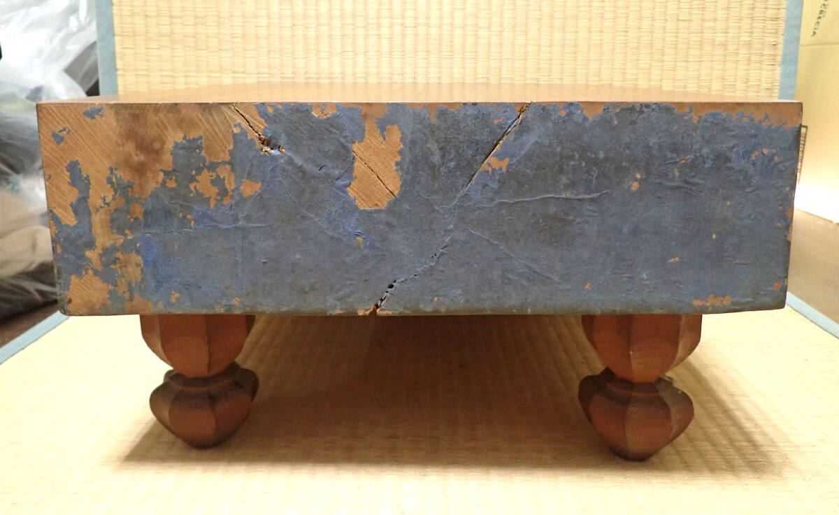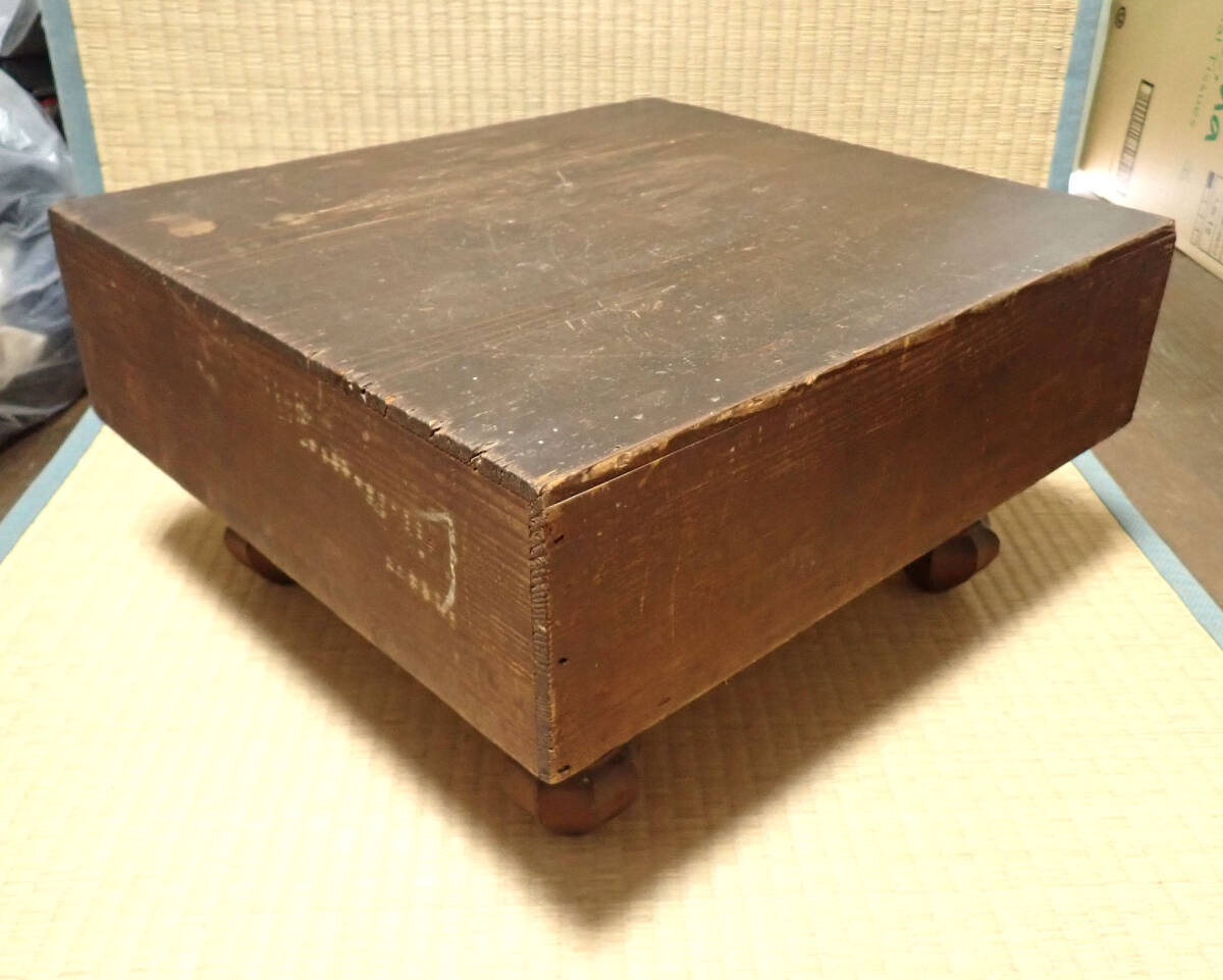木の種類は不明です。 亀裂や脚のガタ付きがあります。 外寸:約44.8×41.8×H24.2cm 盤厚み:約12cm | |||
