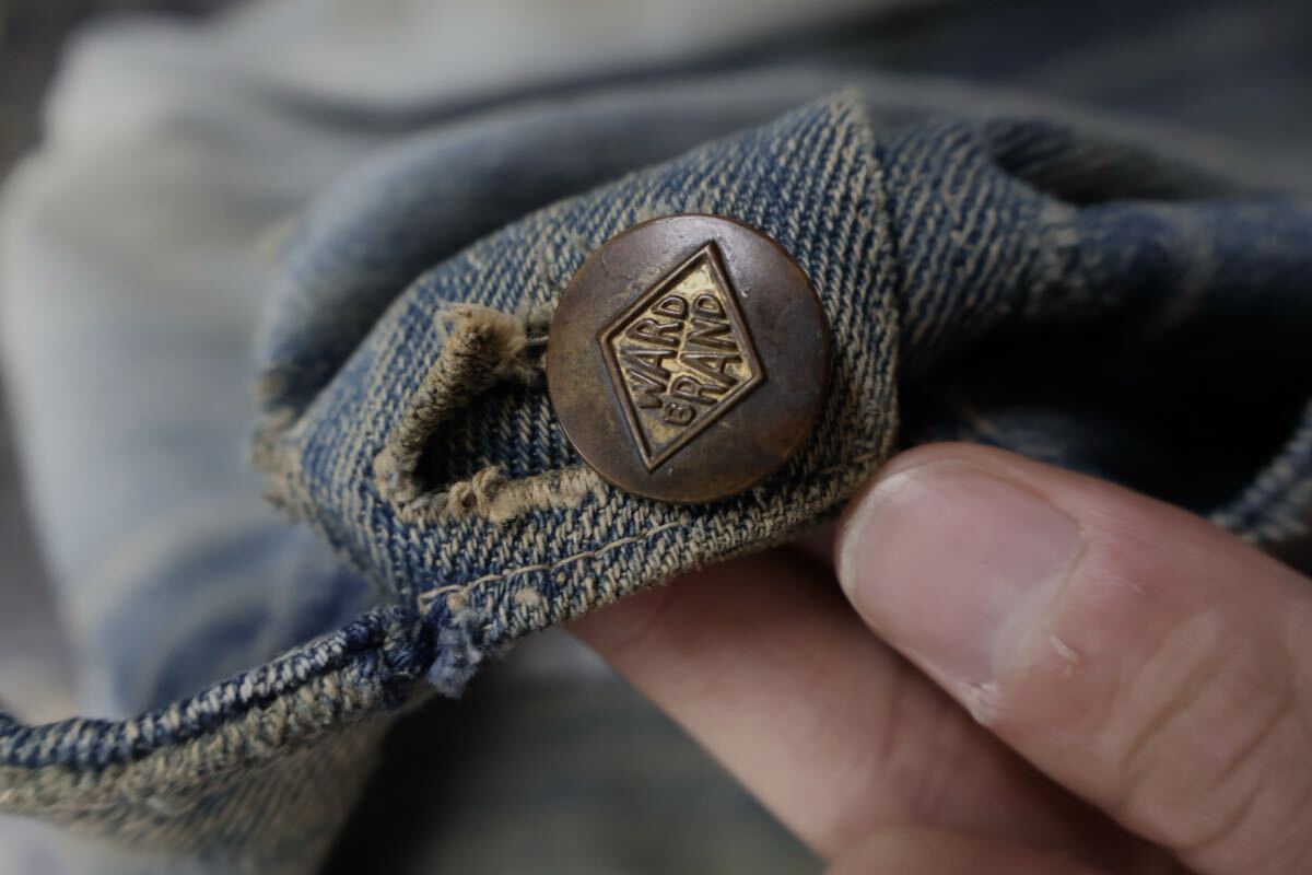 ボタンは” WARD BRAND” と書かれたチェンジボタンが一番上から4個付いており、一番下のボタンは1913年のパテント入りの”HEADLIGHT”のボタンが付いています。袖のボタンが両方付いていません。