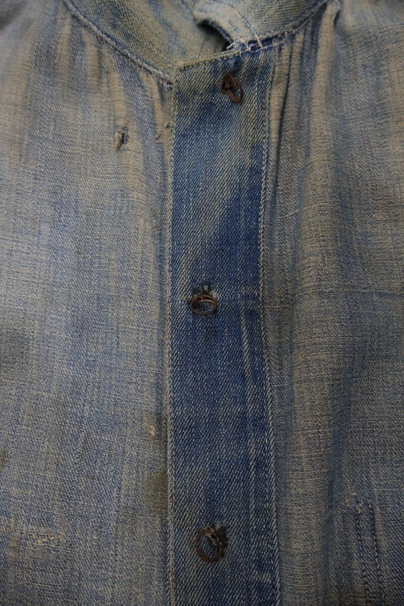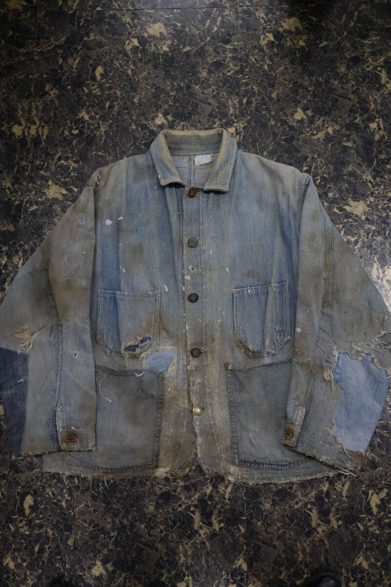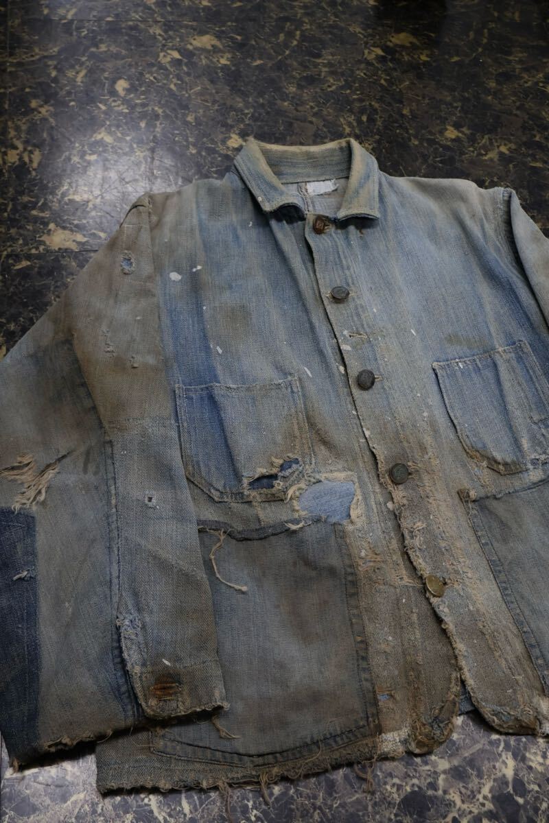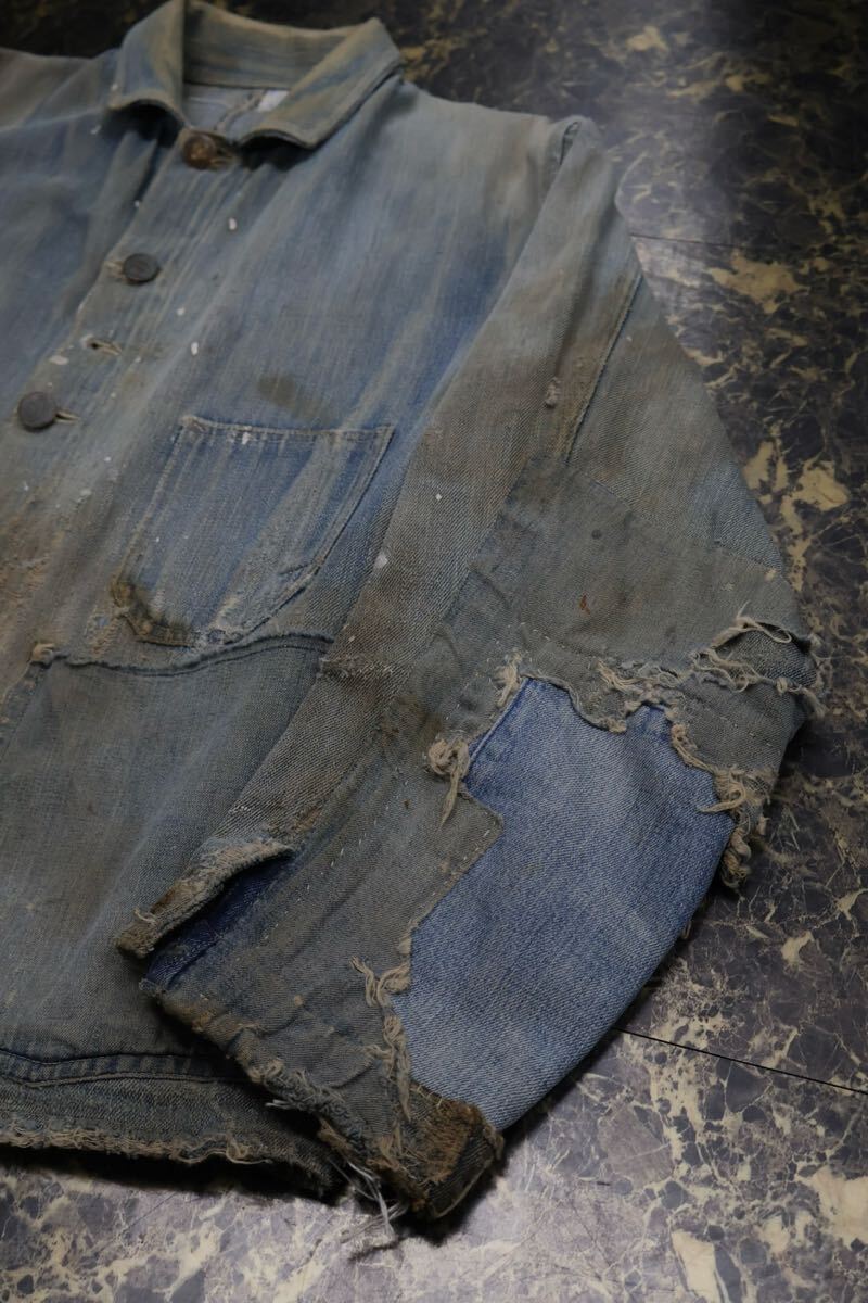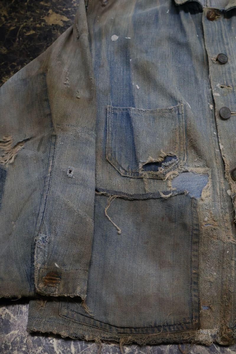 30年代くらいからライトオンスのカバーオールが流行り始めますが、こちらは20年代以前のカバーオール特有のざらっとしたヘビーオンスのデニム生地なのでずっしりと重厚感のある一枚。古いリーバイスとかと同じ感じですかね、凄まじい色落ちをしています。