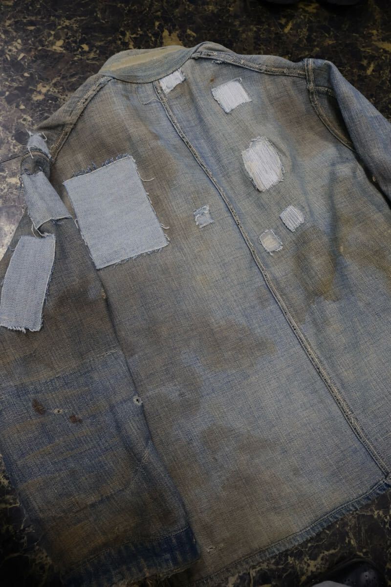 状態は破れ、リペア、オイル汚れなどたくさんありますが、この年代のカバーオールが普通に着用できる状態で残っていることが奇跡だと思います。つぎはぎでリペアされているので、愛情も感じられる素敵な一着です。