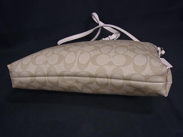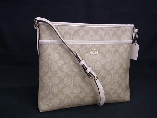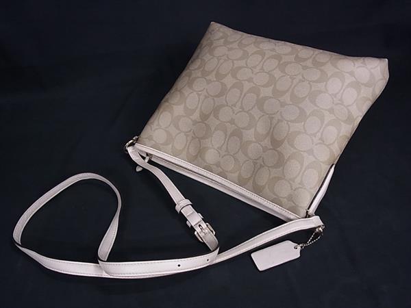 1円 COACH コーチ F58297 シグネチャー PVC×レザー クロスボディ ショルダーバッグ 斜め掛け ベージュ系×アイボリー系 BN6277