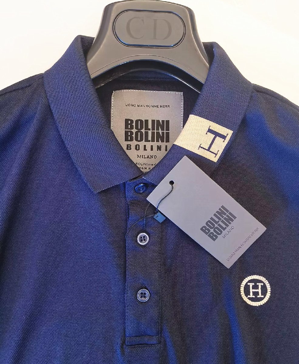 最高級※定価6万◆イタリア・ミラノ発*BOLINI*高級セレブdesigner*豪華シルク/コットン混・長袖ポロシャツ・50/XL・紺