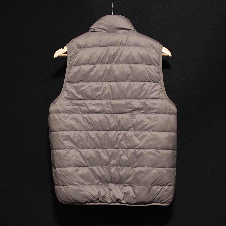 LOGOS ロゴス リバーシブル ダウンベストです。素材は表側:ポリエステル100%、詰物:ポリエステル50%・ダウン45%・フェザー5%、裏側:ナイロン100%になります。