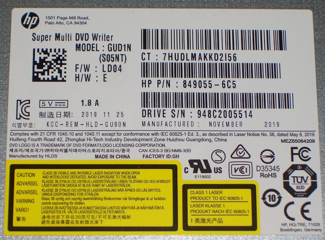 HP/HLDS製 DVDスーパーマルチ スリムドライブ『GUD1N』専用ベゼル付き 動作品!