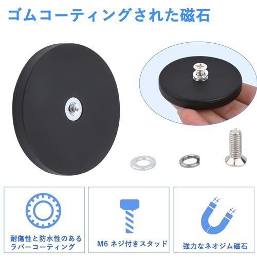【滑り止めゴム層】取り付けマグネットストロングは滑り止めゴム層でコーティングされており、ナットの緩みや内部磁石の破損を防ぎ、傷がつきにくいです。標準M4オネジスタッド、さまざまな取り付けハードウェアと互換性があり、使いやすい。