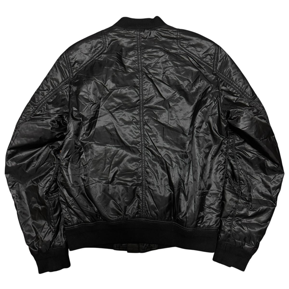 軽量で高密度なナイロンを使用し、耐水加工を施した機能的な一着。バイカースタイルとスポーツ要素を融合したデザインが特徴です。