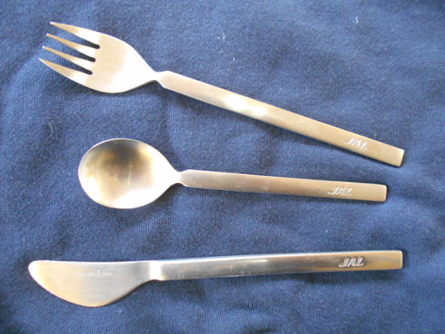 1980年代に使われていた日本航空の機内食用カトラリーUSED3点です。