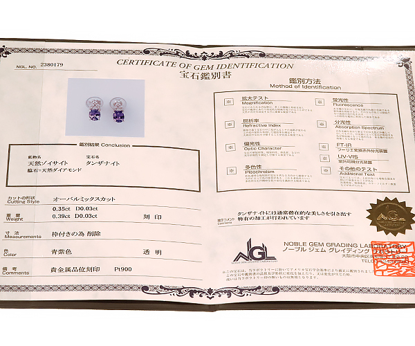| 石目 | タンザナイト 0.35ct、0.39ct メレダイヤ 合計0.03ct×2 | |||||||||||||||||||||||||||||||||