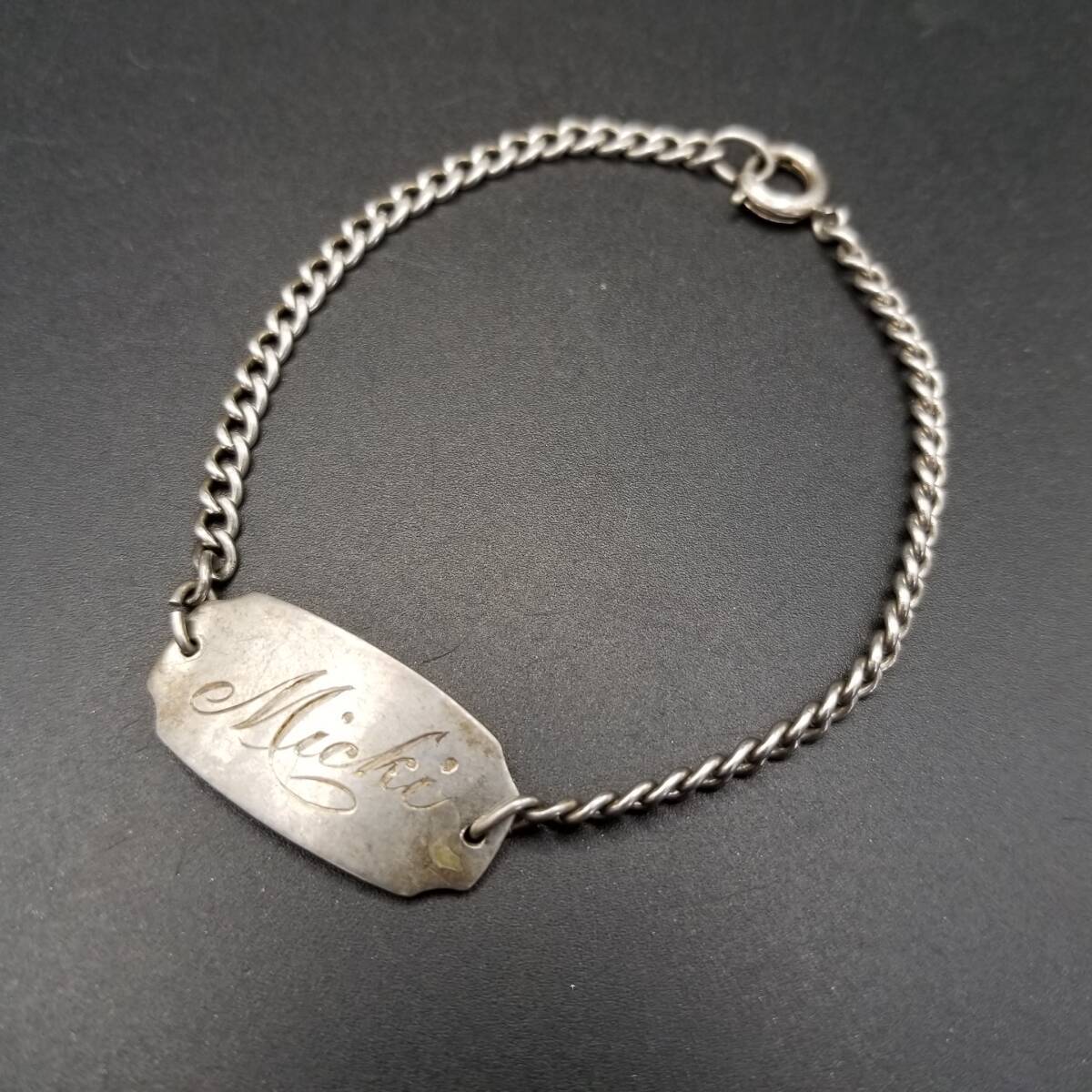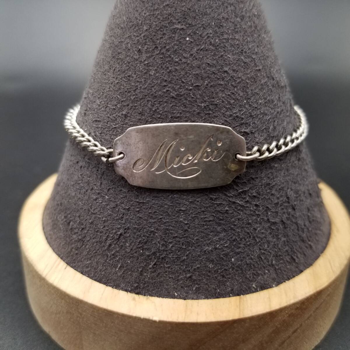LGB Balfour社製 IDタグ 八角形 925 シルバー ヴィンテージ ブレスレット 銀 華奢 レトロ ネーム彫金 Micki Y25-K