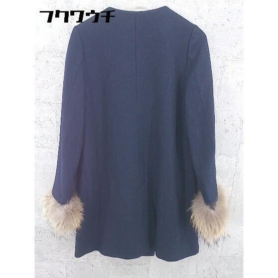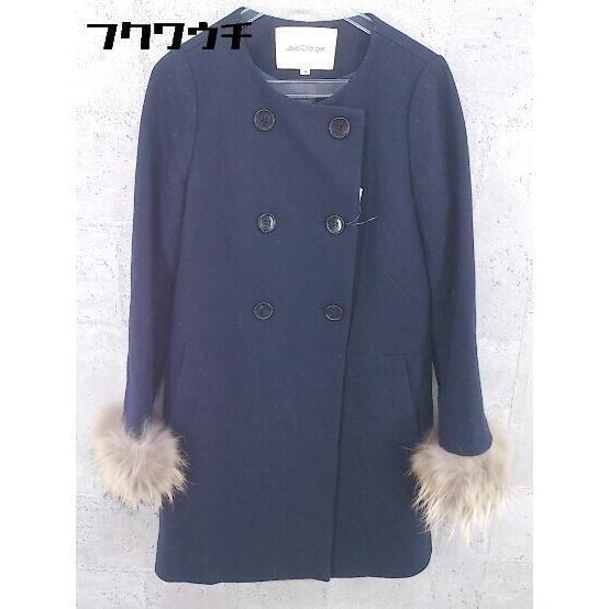 ■ UNITED ARROWS  Jewel Changes ジュエル チェンジズ ラクーンファー ノーカラー コート 36 ネイビー * 1002799897600