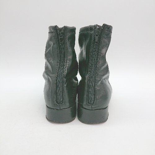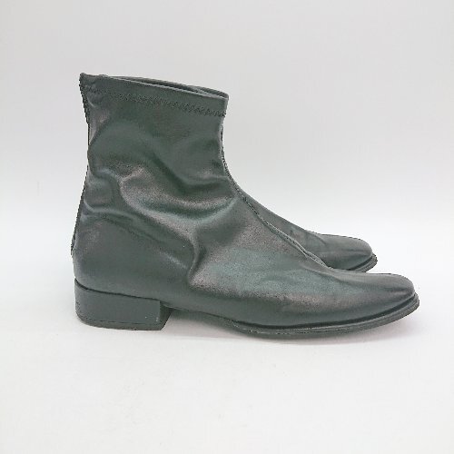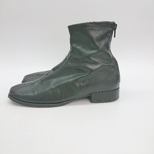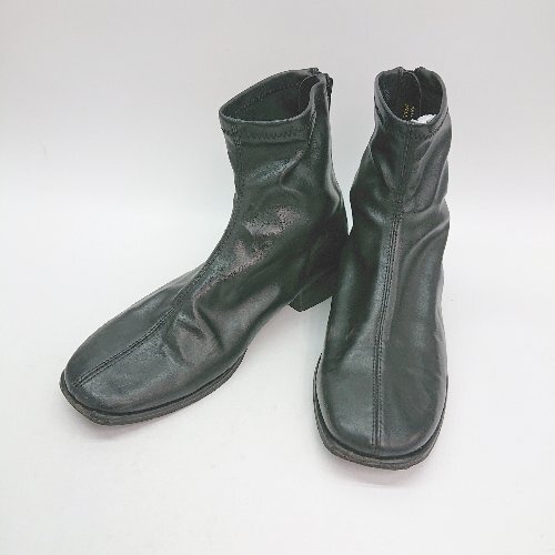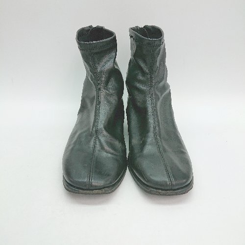 ◇ SENSE OF PLACE スクエアトゥ バックファスナー レザー カジュアル ショート ブーツ サイズM ブラック レディース E