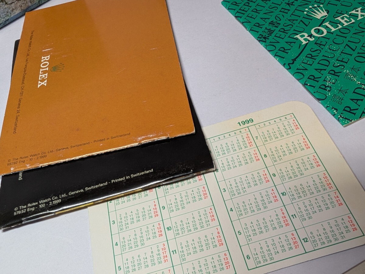 付属品は内外箱(箱のシールは14270ではありません)、エクスプローラー冊子1999年、オイスター冊子1999年、フラグメントケース、携帯用ビニールケース、クロノメータータグ、保証書翻訳の冊子、ギャランティカードケース、カレンダー1998年/1999年