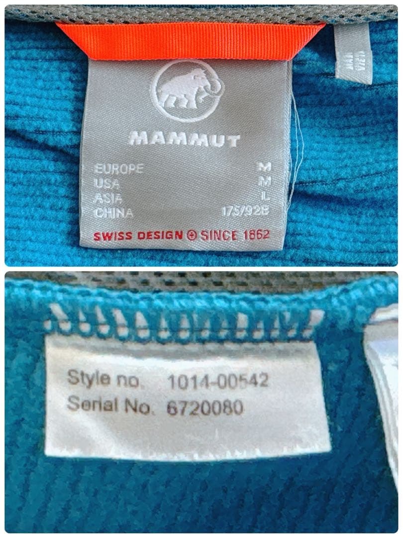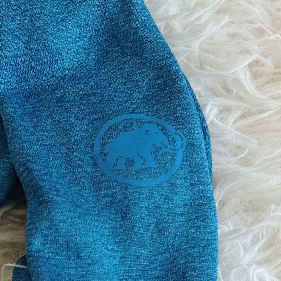 左袖にはマンモスロゴ(刺繍)、右胸と背面にもブランドロゴ入りで、マムートらしいデザイン性が魅力。