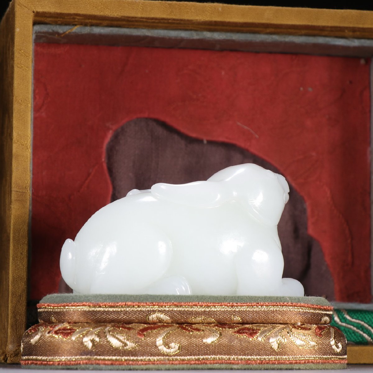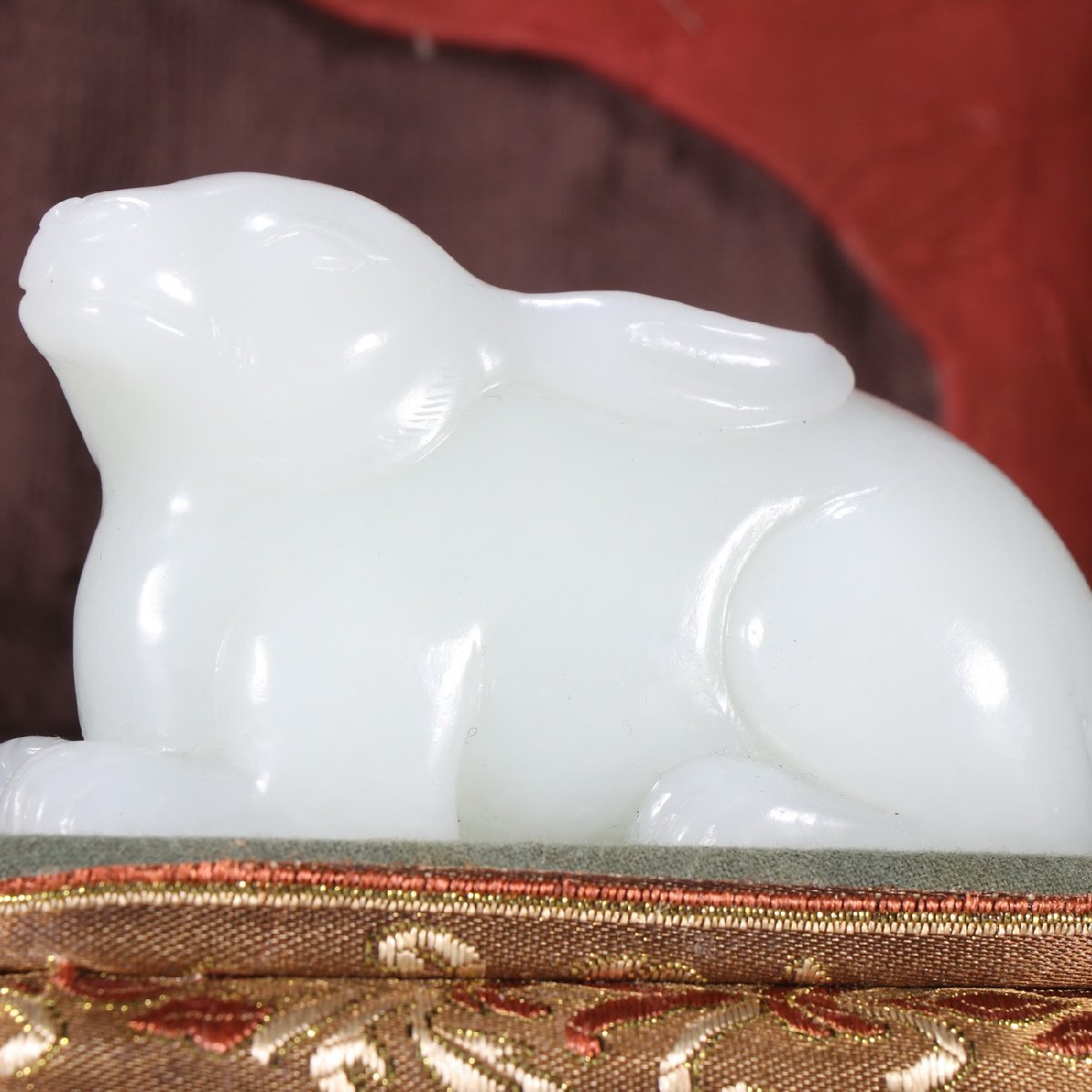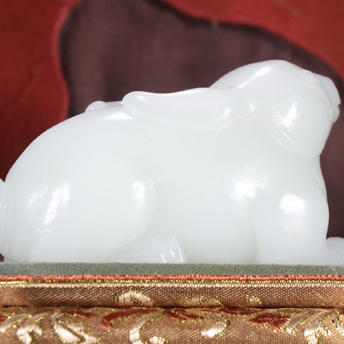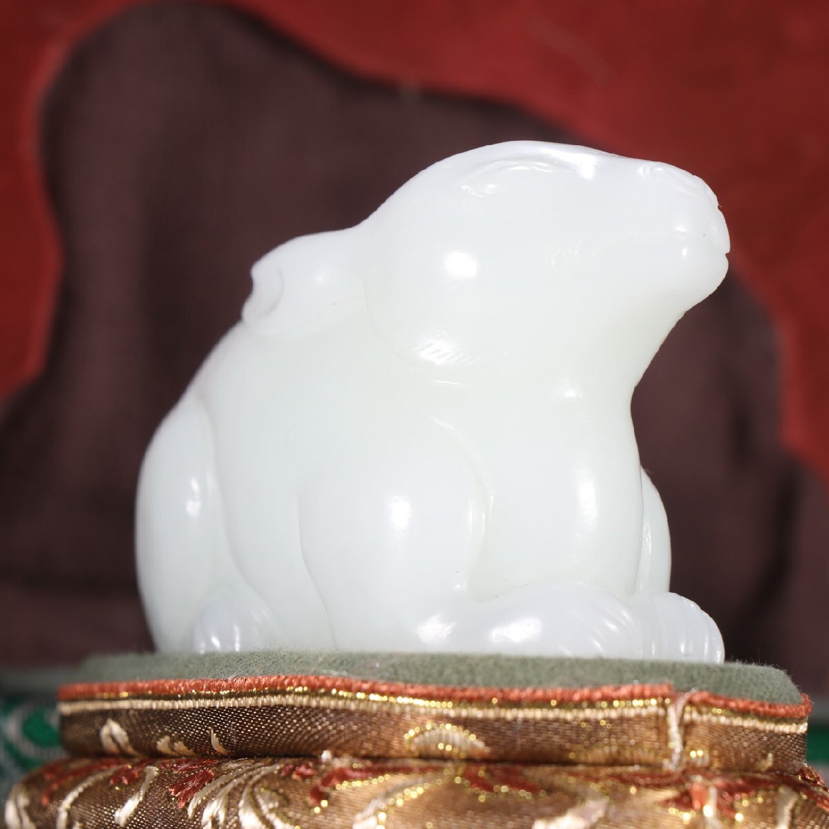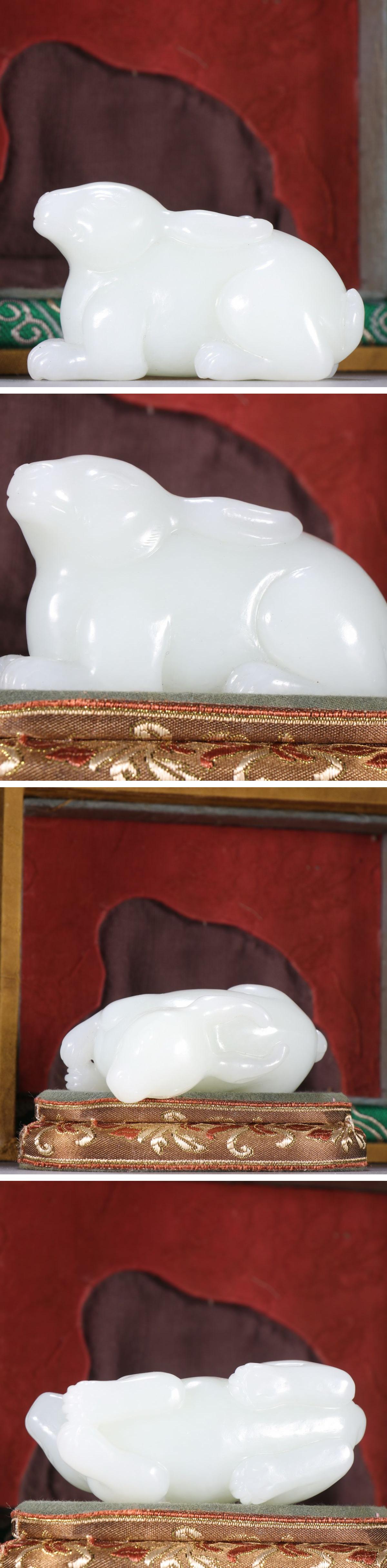 【清】関西某オークション購入 中国・清時代 和田玉子料 玉兎紋彫り物 極細工 古置物 古擺件 中国古美術7L10-GA20