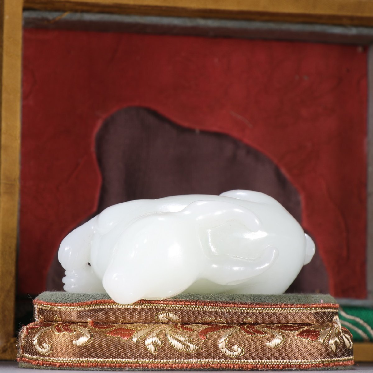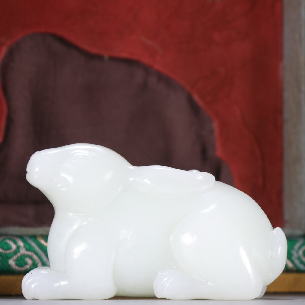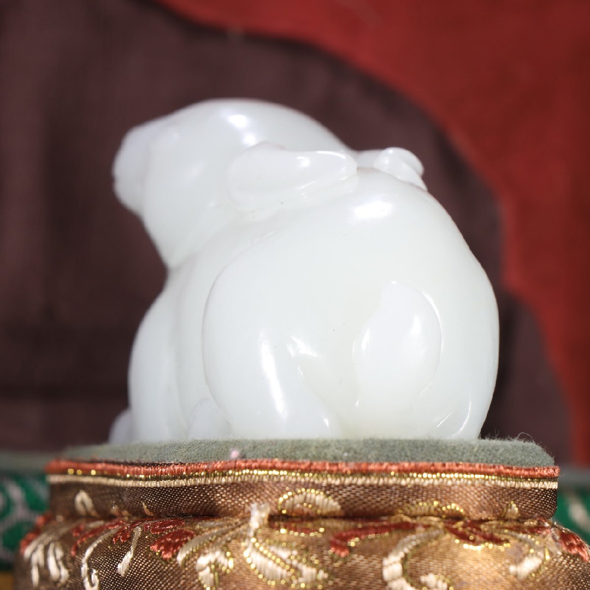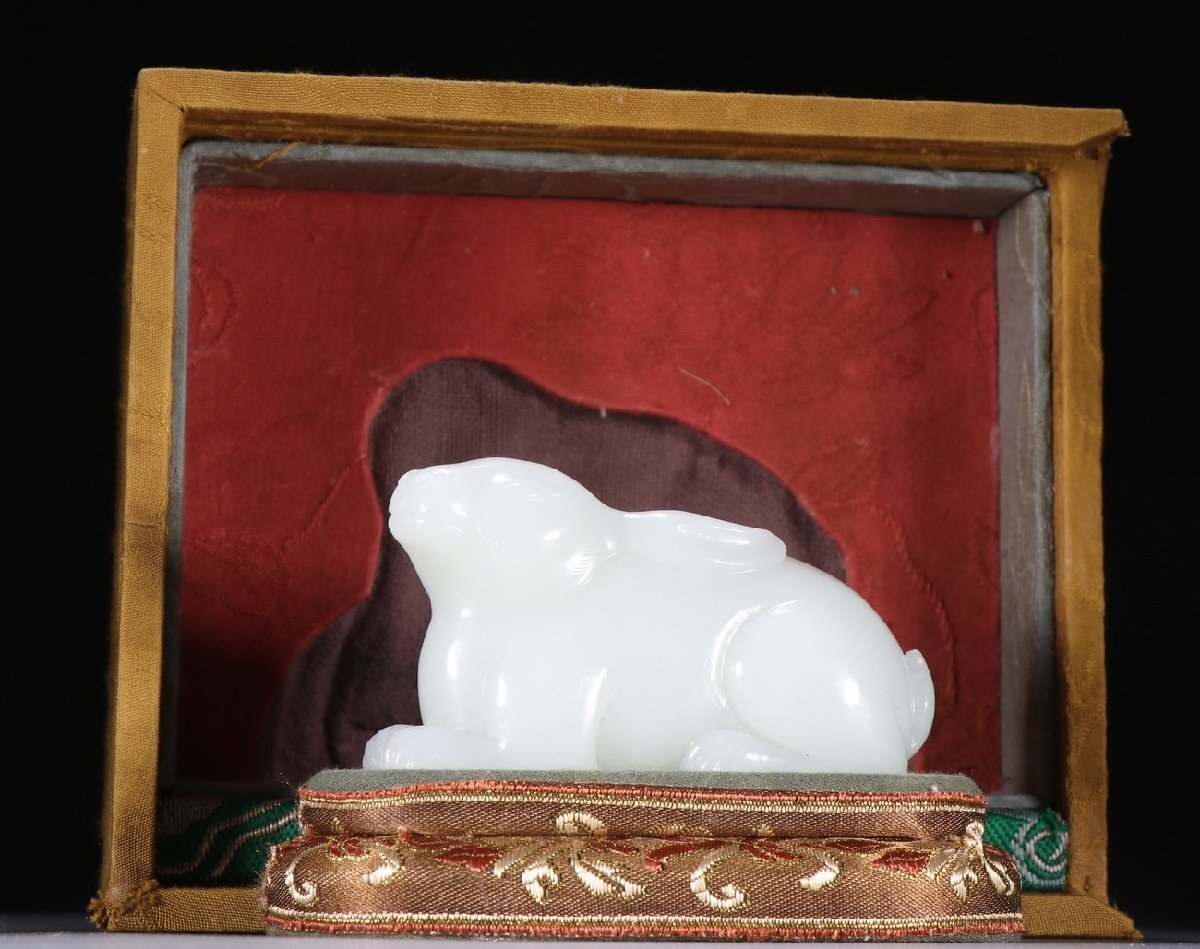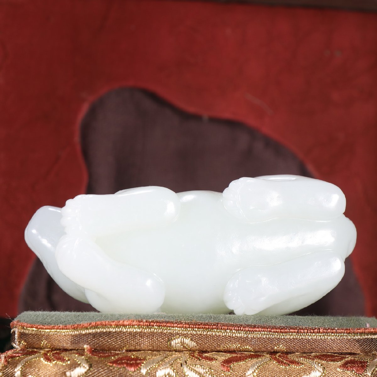 【清】関西某オークション購入 中国・清時代 和田玉子料 玉兎紋彫り物 極細工 古置物 古擺件 中国古美術7L10-GA20