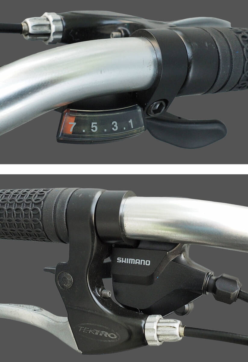 右の変速レバーと前後のタイヤとチューブとグリップも