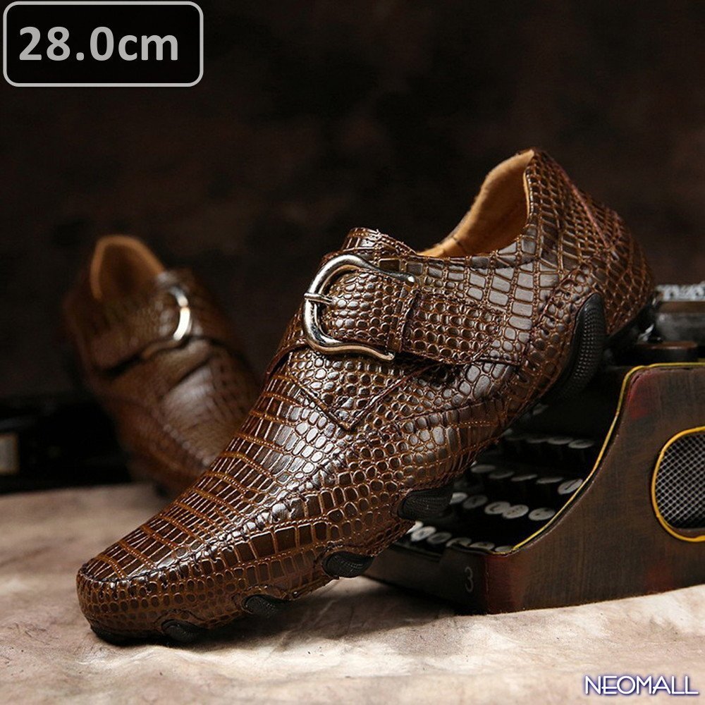 牛皮 型押し ☆ メンズ ビジネス レザー ワニ柄 シューズ ブラウン サイズ 28.0cm 革靴 靴 カジュアル 屈曲性 通勤 軽量 【620】