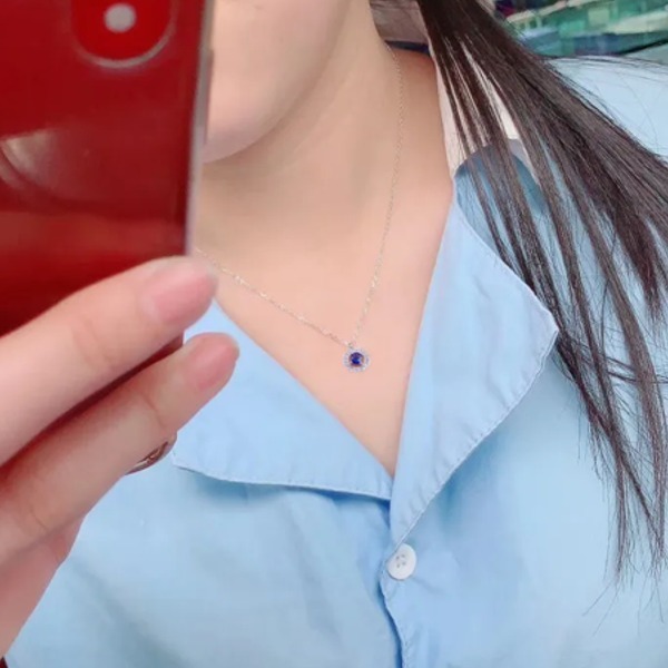 天然サファイアジェムストーンペンダント 女性用ネックレス シンプルなファッション ファインジュエリー s925スターリングシルバー
