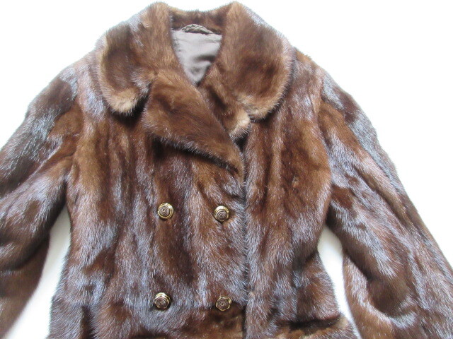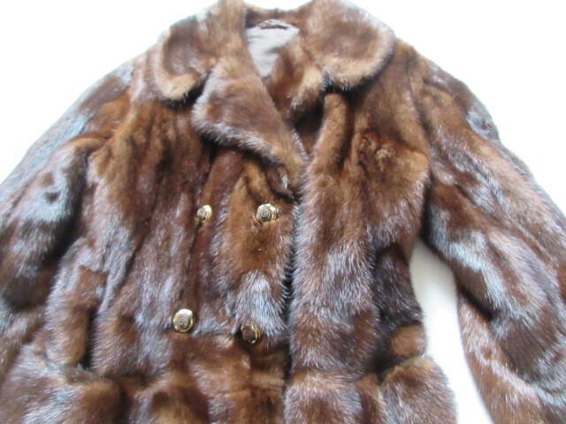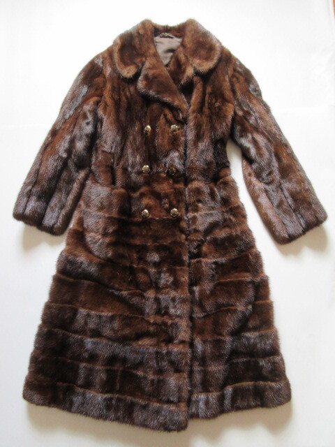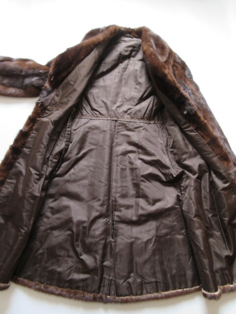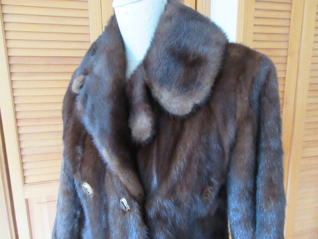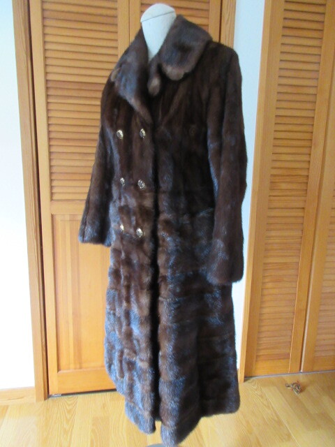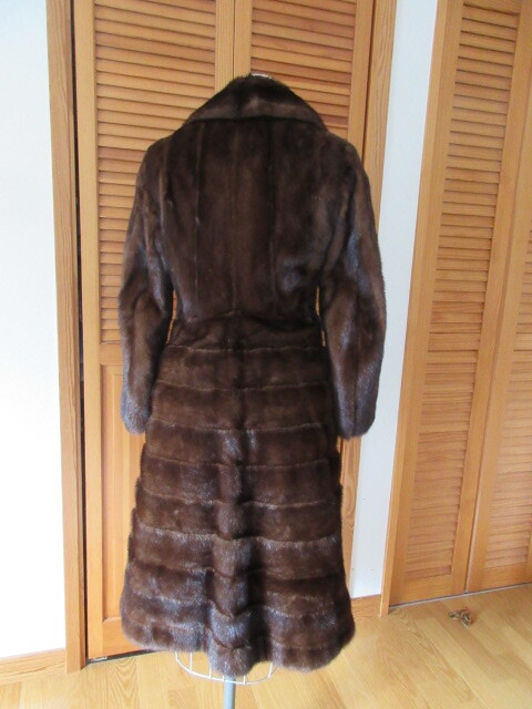 ミンク リアルファー ロングコート こげ茶色 ベルギー 肩幅約38cm、脇下約43cm、丈約103cm。柔らかくかさばらないミンクです。デミバフかと思いますが、詳細は分かりません。ゆうパック100サイズです。