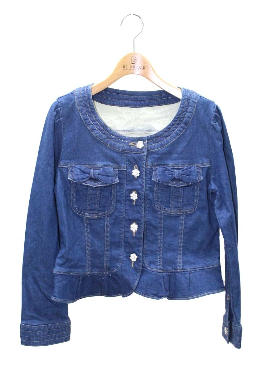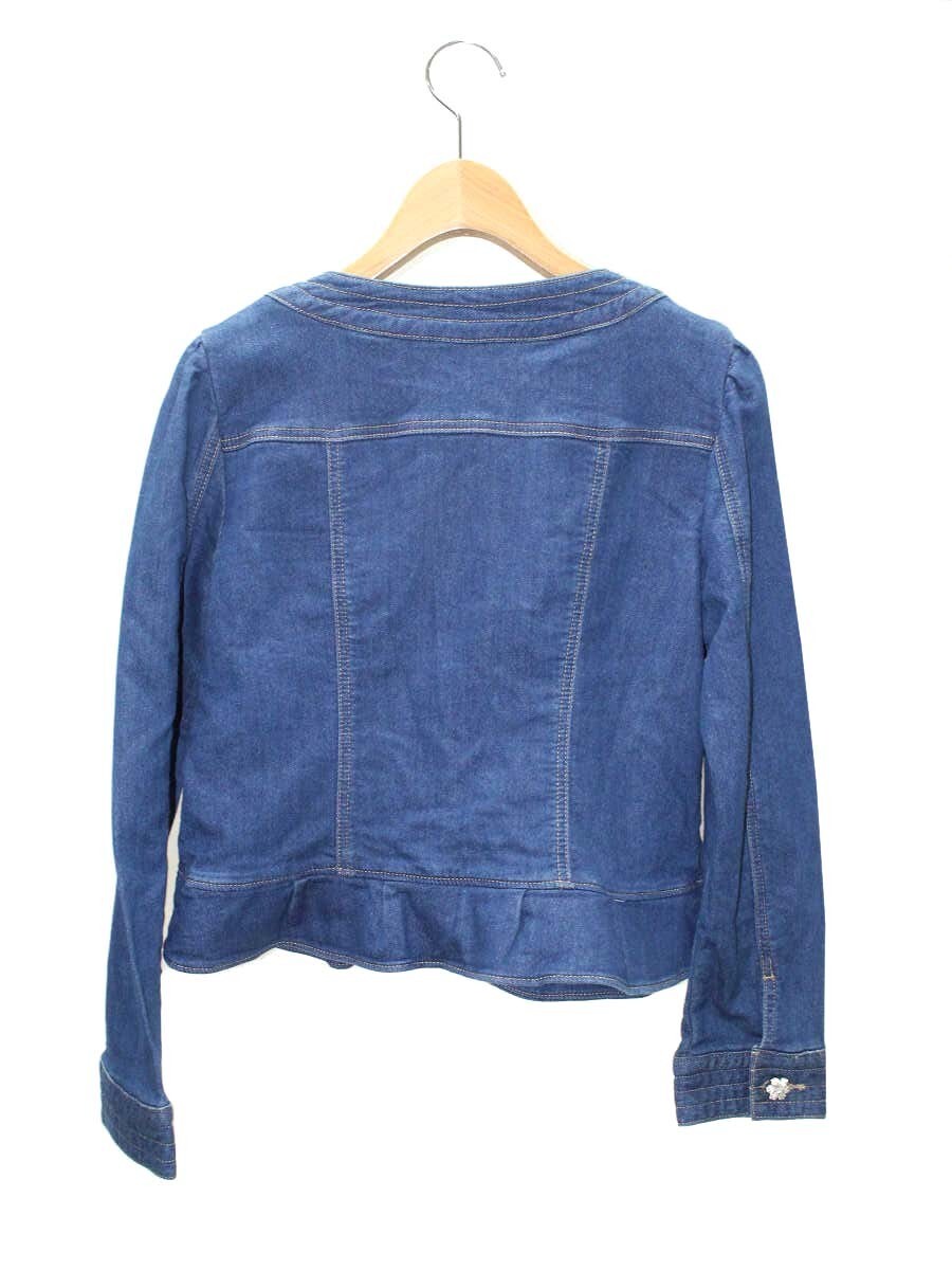 ギャラリービスコンティ 1333052-16 デニムジャケット 2 ブルー ラインストーン フラワーボタン ショート ノーカラー ITH9K1IL06VW