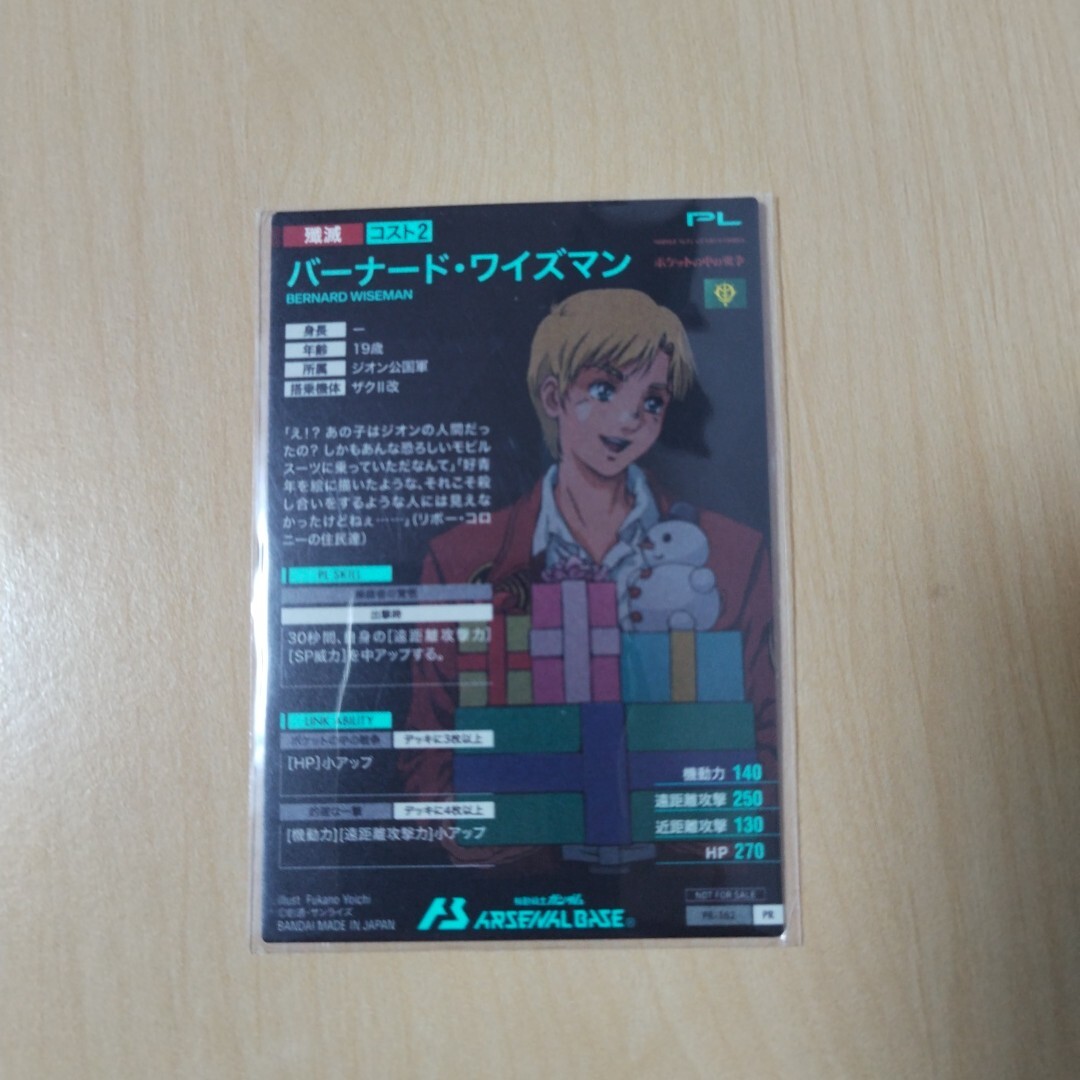 ガンダムアーセナルベース、プロモ、バーナード・ワイズマンの出品となります。未使用品です。パック開封後、スリーブに入れて保管していますが初期キズなど気になさる方はご遠慮ください。配送料金は梱包代込みで全国一律、120円とさせていただきます。他の出品との同梱は対応いたします。ノークレム、ノーリターンにてお願いいたします。