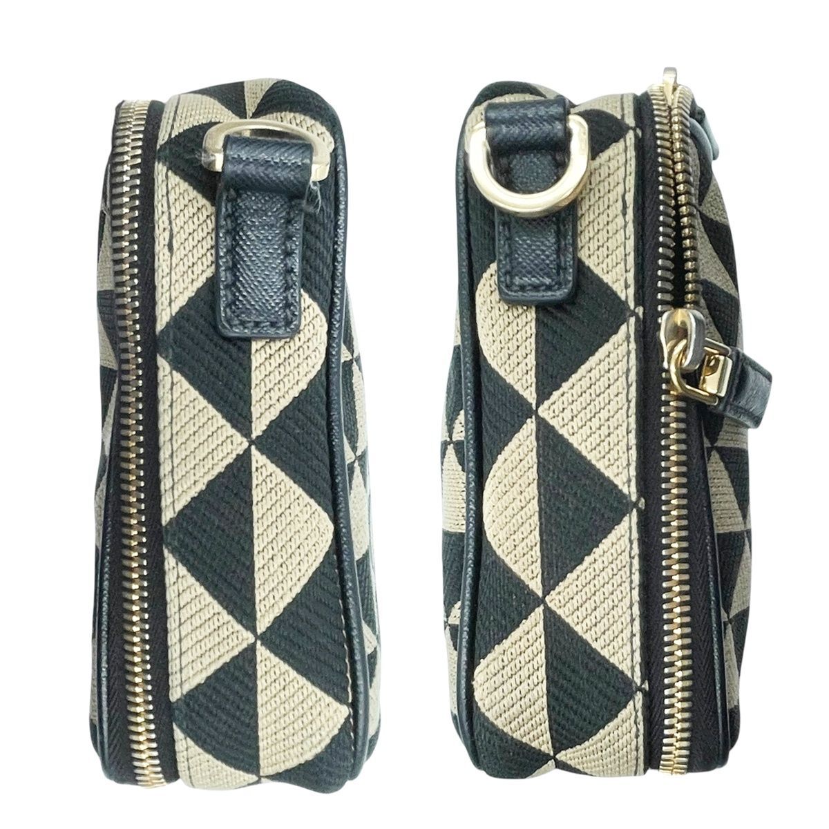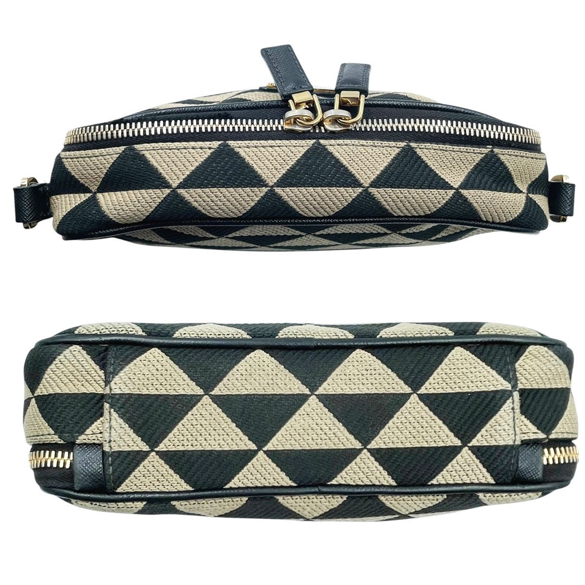 ■Name:Brick Embroidery Fabric Shoulder Bag 2VH069 Triangle Logo Yellow Black Wide Strap *Damaged