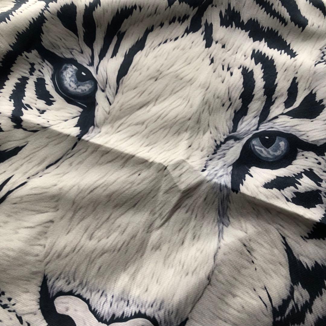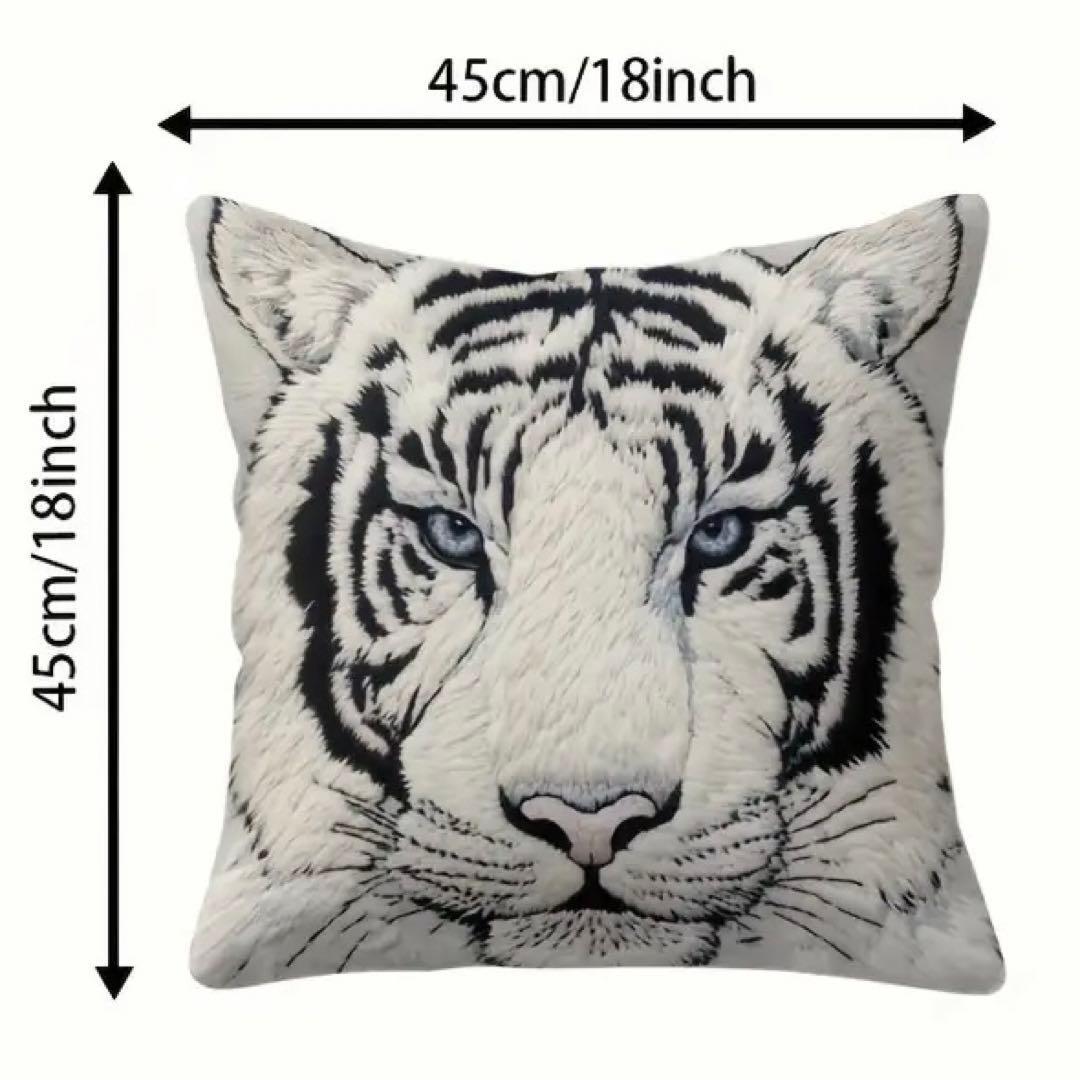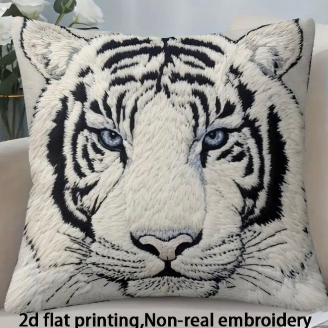 刺繍風のプリントでリアルなホワイトタイガーのデザインが魅力的です。凛とした顔をしたホワイトタイガーのクッションカバー、とてもおしゃれで素敵です。お部屋のインテリアにぴったりで、癒しの空間を作り出します。虎好きにはたまらないアイテムです!虎、ホワイトタイガー好きな方へのプレゼントにもいかがでしょうか?