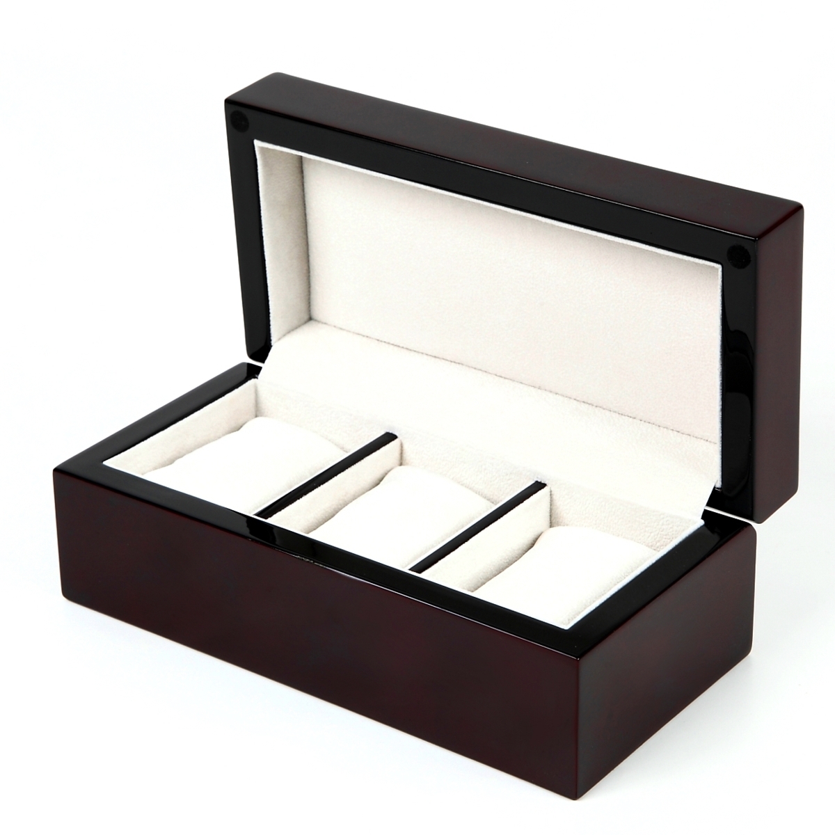 高級感と気品に溢れ、木製ならではの素材感をしっかり演出しており3本の腕時計が収納可能。繰り返し表面塗装を行い表面が非常に滑らかで深みのある「光沢」のある仕上がりです。 内装と時計のホルダーに手触りの良いベルベット素材を採用し収納スペースも広めに設計しておりますので時計もゆったり収まります。腕時計のプレゼントとあわせて収納ケースも是非プレゼントに!